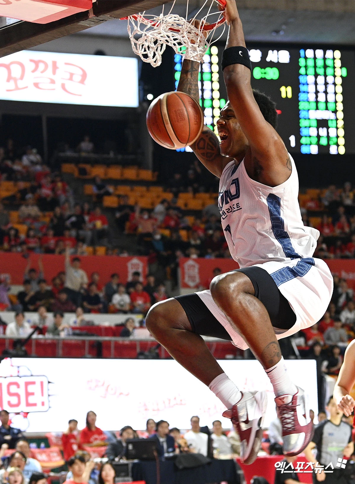 (엑스포츠뉴스 잠실학생체, 고아라 기자) 14일 오후 서울 송파구 잠실학생체육관에서 열린 2025-2026 LG전자 프로농구 서울 SK와 고양 소노의 6강 플레이오프 2차전, 소노 나이트가 덩크슛을 넣고 있다.