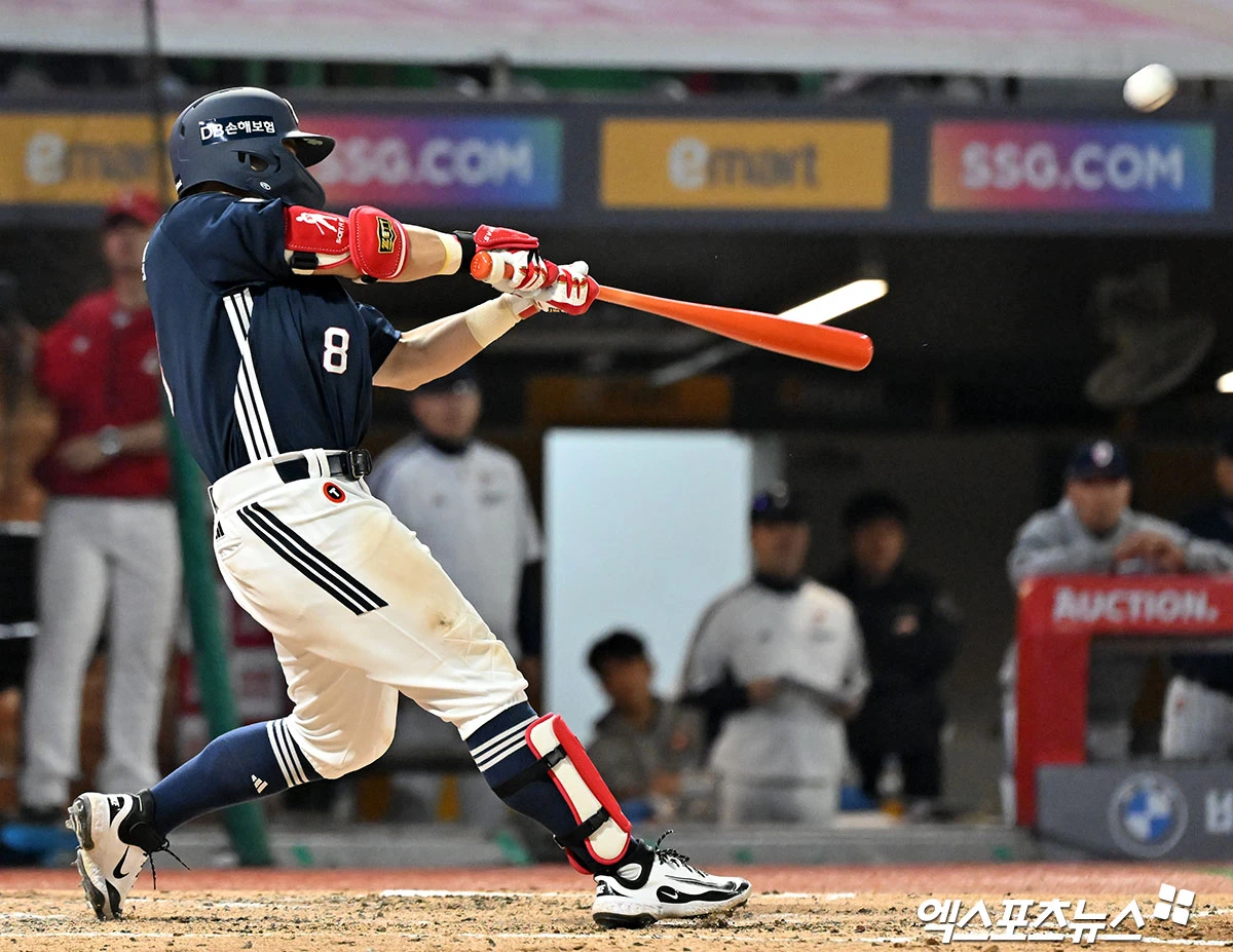 (엑스포츠뉴스 인천, 김한준 기자) 14일 오후 인천SSG랜더스필드에서 열린 '2026 신한 SOL Bank KBO리그' 두산 베어스와 SSG 랜더스의 경기, 4회초 1사 2루 두산 손아섭이 투런 홈런을 날리고 있다.