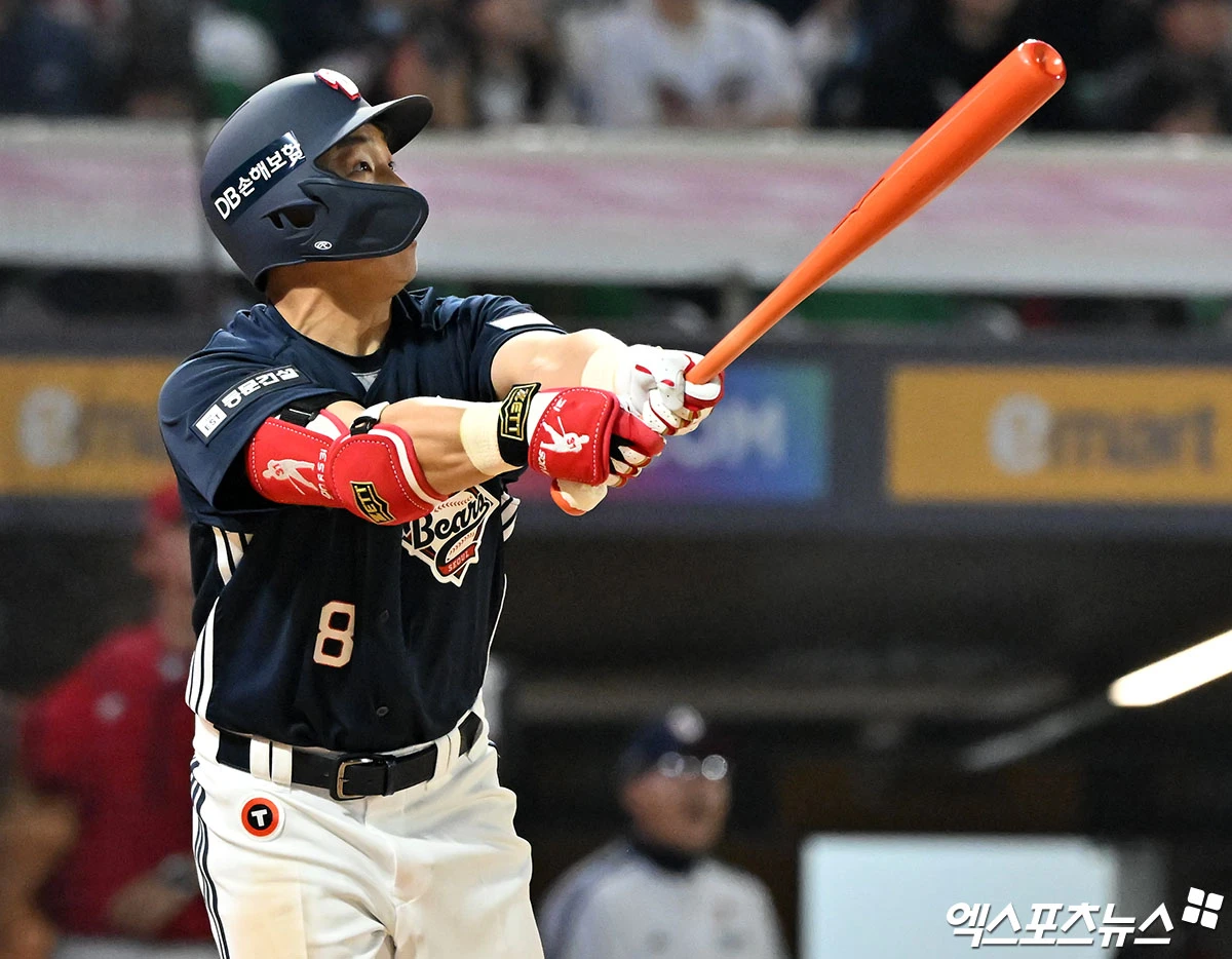 (엑스포츠뉴스 인천, 김한준 기자) 14일 오후 인천SSG랜더스필드에서 열린 '2026 신한 SOL Bank KBO리그' 두산 베어스와 SSG 랜더스의 경기, 4회초 1사 2루 두산 손아섭이 투런 홈런을 날리고 있다.