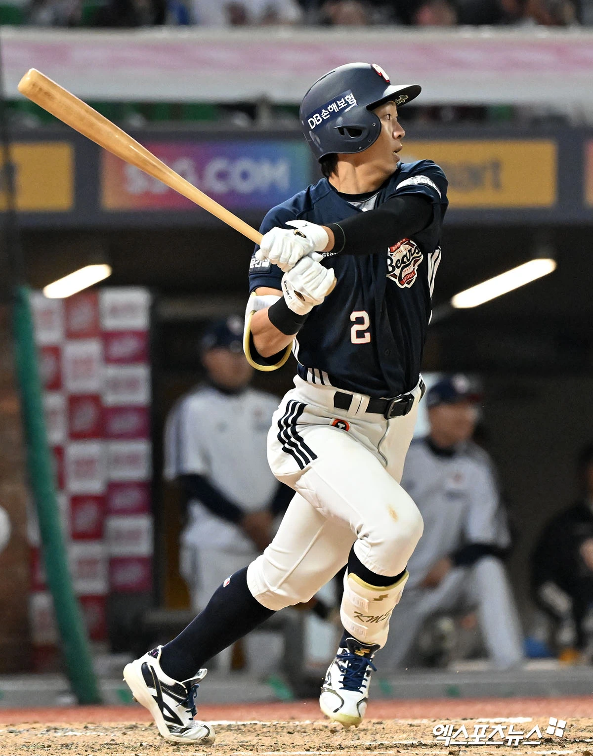 (엑스포츠뉴스 인천, 김한준 기자) 14일 오후 인천SSG랜더스필드에서 열린 '2026 신한 SOL Bank KBO리그' 두산 베어스와 SSG 랜더스의 경기, 5회초 1사 두산 김민석이 좌전안타를 날리고 있다.