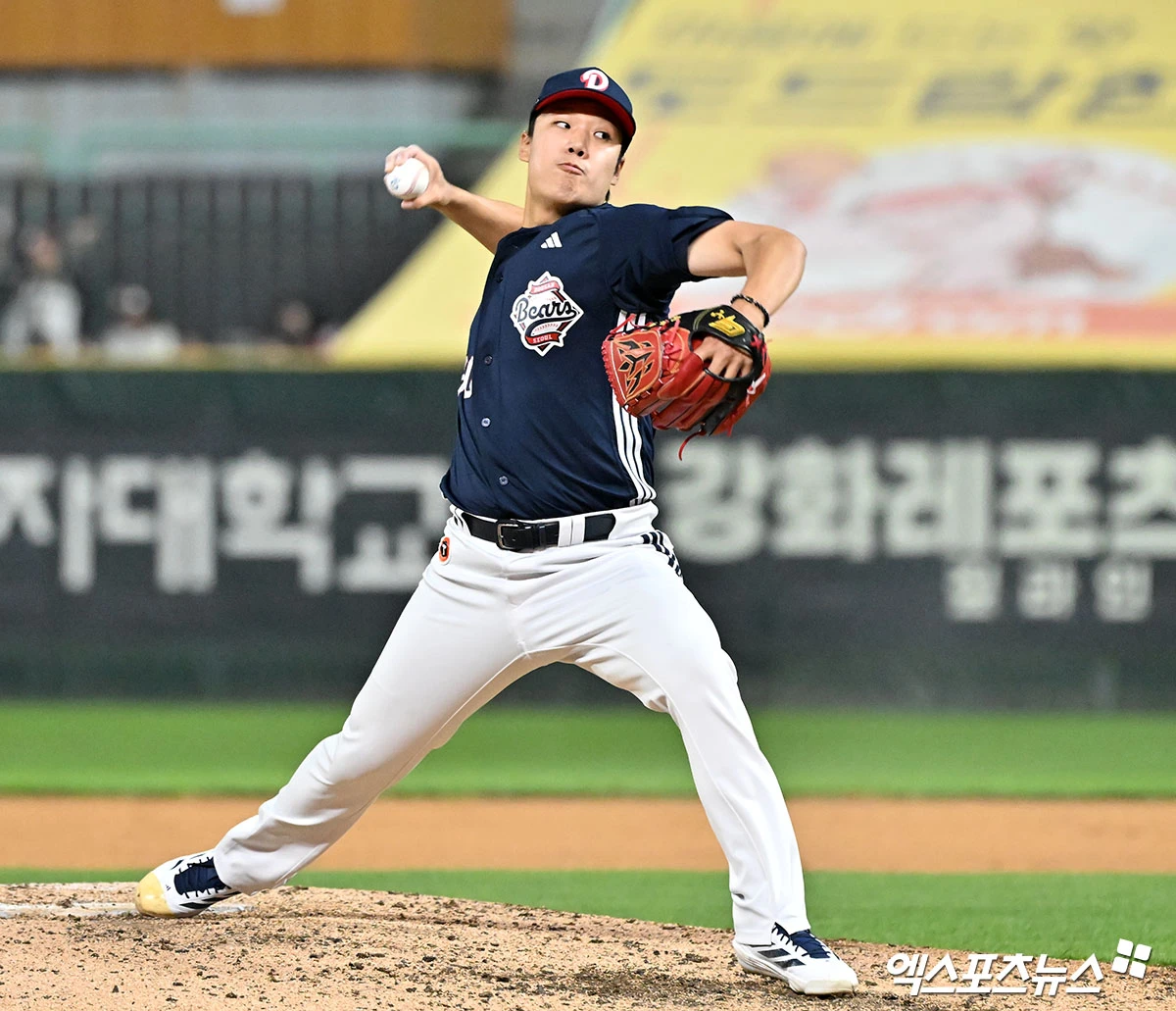 (엑스포츠뉴스 인천, 김한준 기자) 14일 오후 인천SSG랜더스필드에서 열린 '2026 신한 SOL Bank KBO리그' 두산 베어스와 SSG 랜더스의 경기, 7회말 두산 양재훈이 공을 힘차게 던지고 있다.