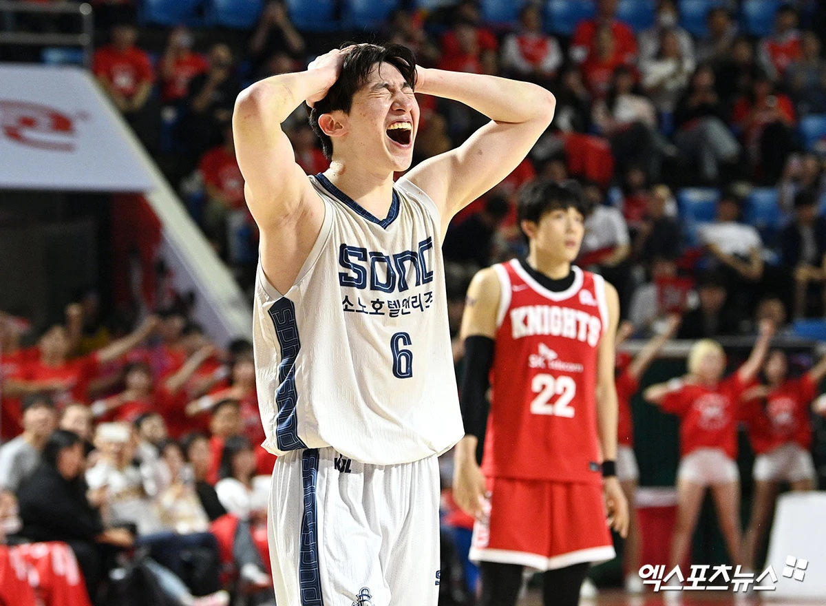 소노 이정현이 승리를 예감한 뒤 기뻐하고 있다.