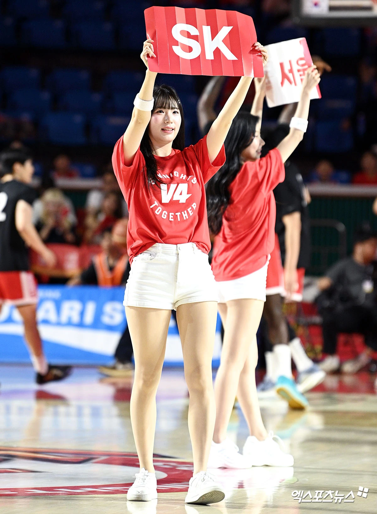 (엑스포츠뉴스 잠실학생체, 고아라 기자) 14일 오후 서울 송파구 잠실학생체육관에서 열린 2025-2026 LG전자 프로농구 서울 SK와 고양 소노의 6강 플레이오프 2차전, 정다혜 치어리더가 열띤 응원을 펼치고 있다.