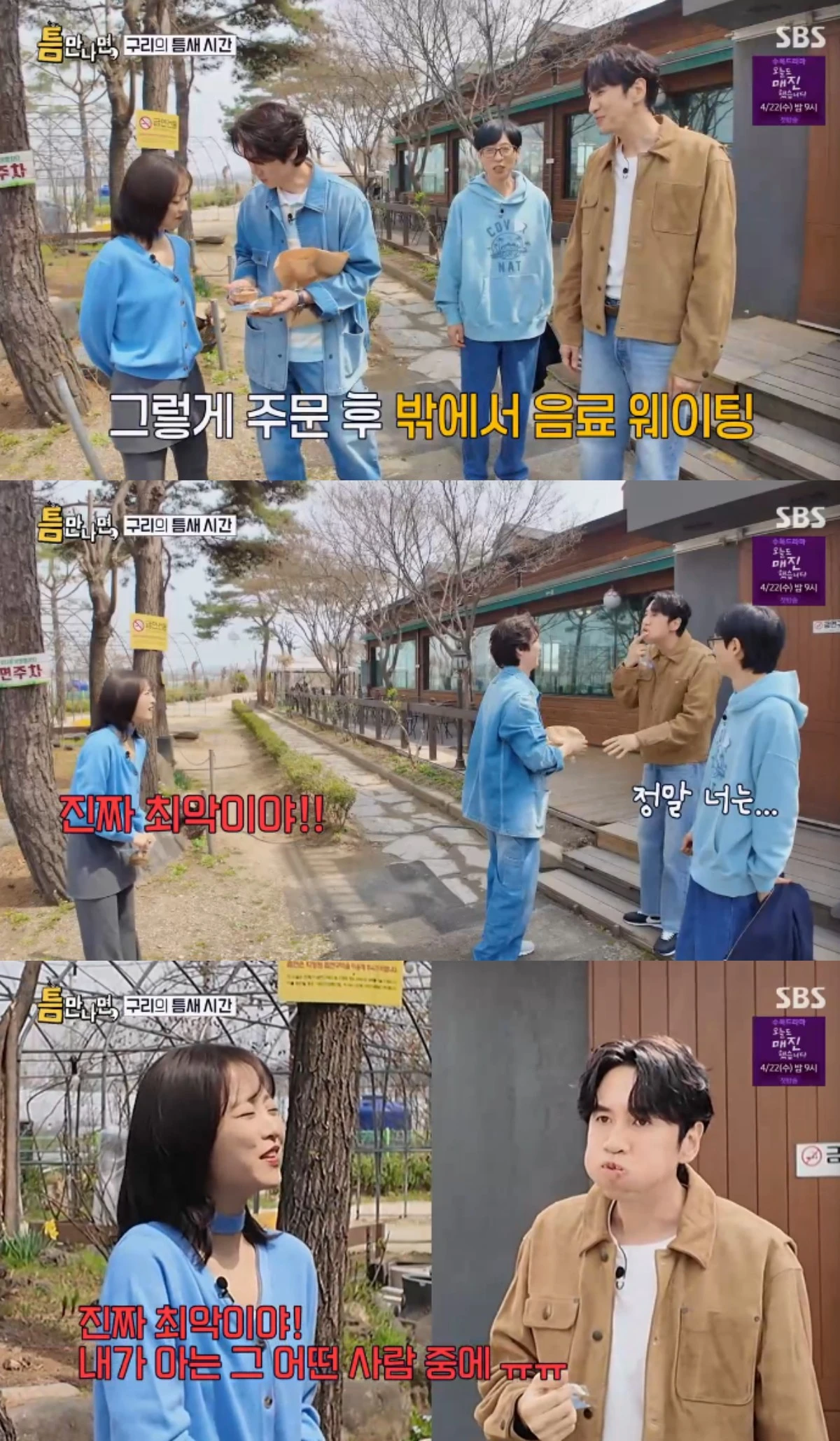 그 때 이광수는 디저트를 나눠먹지 않고 입안에 전부 우겨넣었고, 이 모습을 본 박보영은 "진짜 최악이야. 내가 아는 그 어떤 사람들 중에서. 너무 싫다. 진짜"라고 질색해 웃음을 자아냈다.
