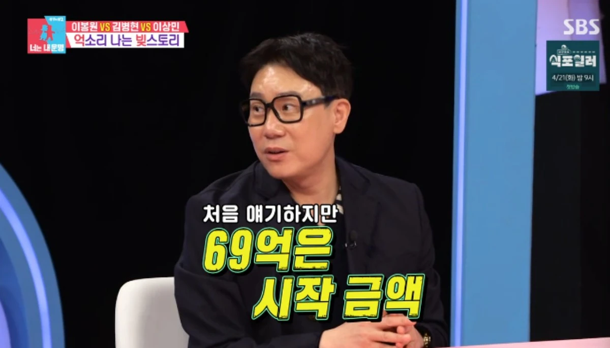 김숙은 "이상민 씨는 알려진 빚만 69억 아니었냐"고 했고, 이상민은 "솔직히 69억은 시작 금액이었다"고 말해 모두를 놀라게 했다.