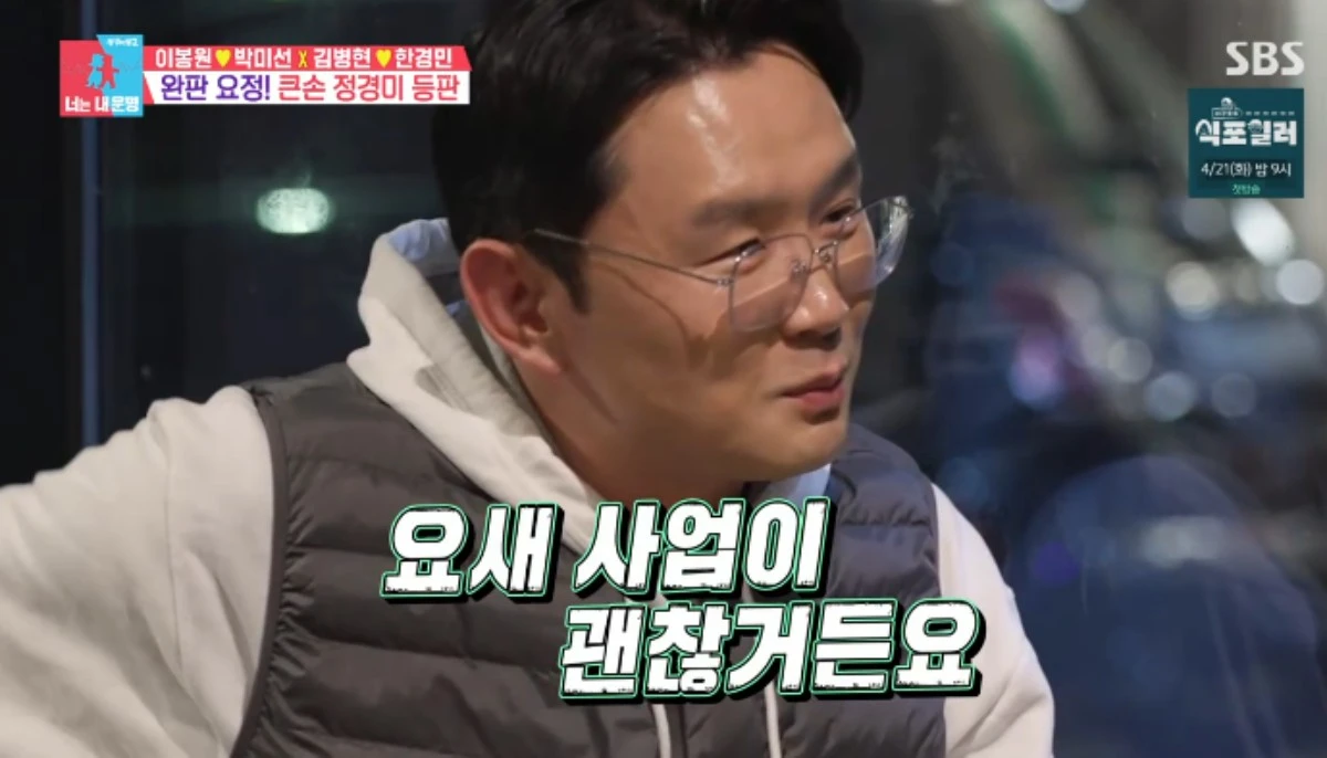 이를 들은 이봉원과 김병현도 "사업 이야기를 꺼내는 순간 아내가 걱정을 한다. 미리 말하면 스트레스를 받으니까, 걱정을 줄여주려고 말을 안하는 것"이라면서 공감해 웃음을 줬다.