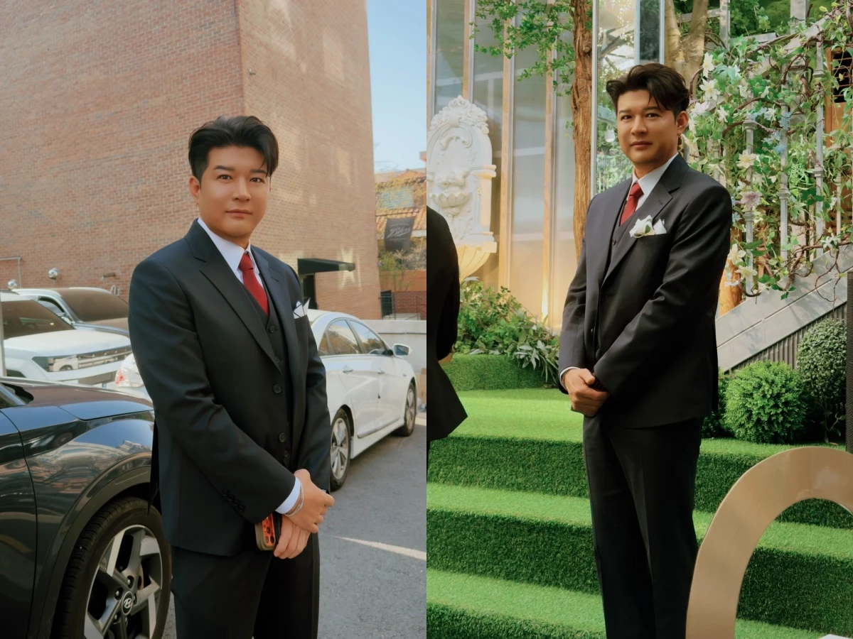 사진 속에는 홀쭉해진 몸이 드러난 맞춤 정장을 입고 결혼식 사회를 보는 신동의 모습이 담겨 있다.