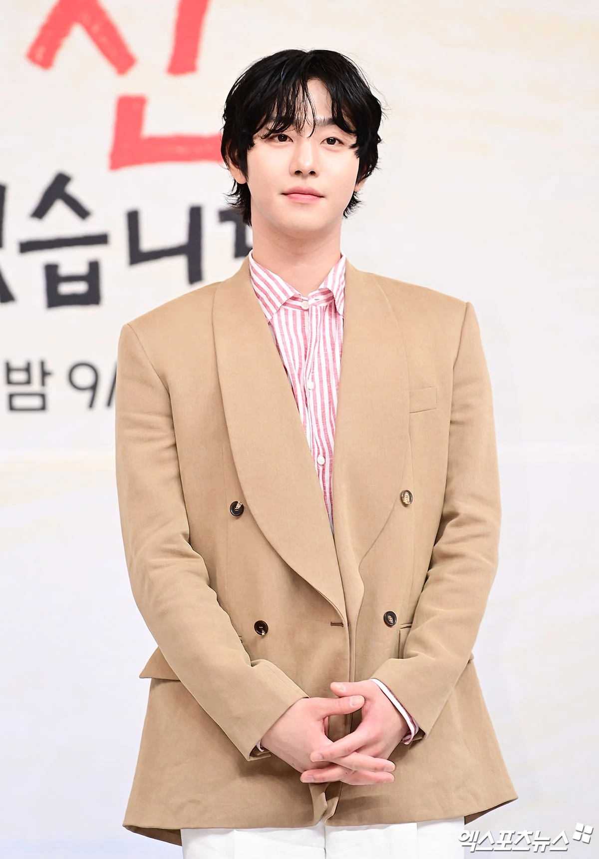 이날 제작발표회에 참석한 배우 안효섭이 포토타임을 갖고 있다.