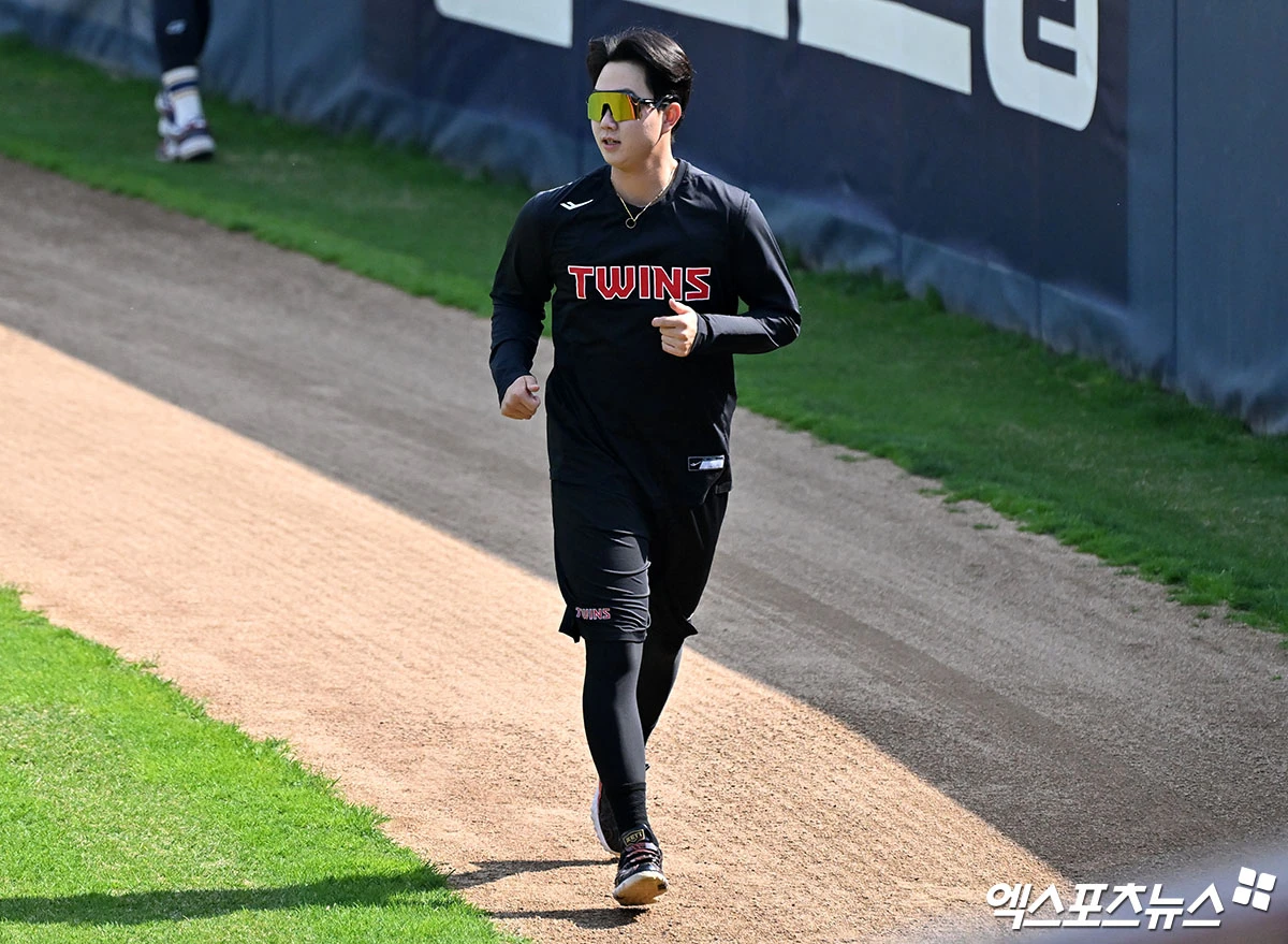 (엑스포츠뉴스 잠실, 김한준 기자) 15일 오후 서울 송파구 잠실야구장에서 열리는 '2026 신한 SOL Bank KBO리그' 롯데 자이언츠와 LG 트윈스의 경기, LG 유영찬이 훈련에 임하고 있다.