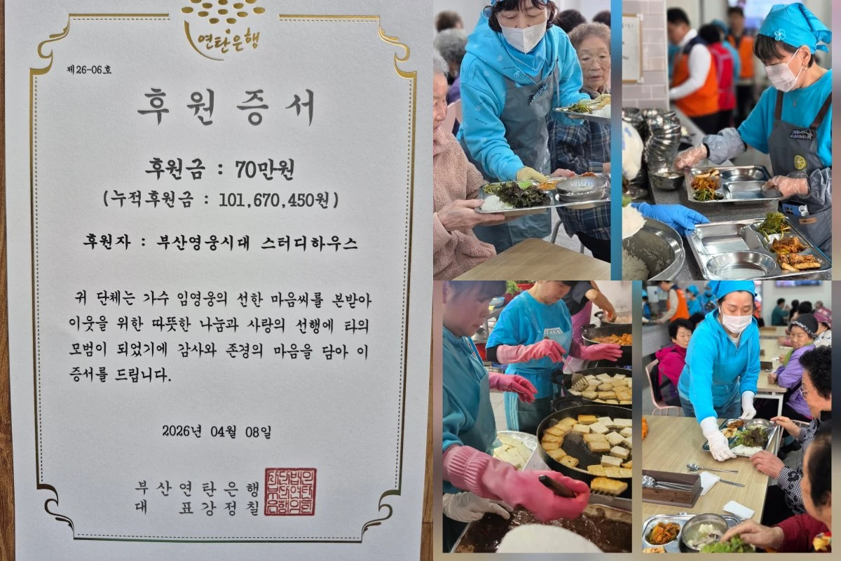 한편, '부산영웅시대 스터디하우스'의 나눔은 5년 이상 이어져 왔다. 이들은 매달 70만 원의 정기 기부·특별 기부를 지속해 왔으며, 직접 조리, 급식, 청소 봉사를 진행했다.