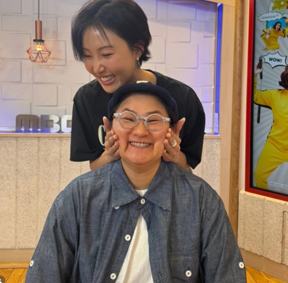 공개된 사진 속 화사는 김신영의 얼굴을 양손으로 감싼 채 환하게 웃고 있다. 김신영 역시 밝은 미소를 짓고 있어 두 사람의 유쾌한 케미가 시선을 사로잡는다.
