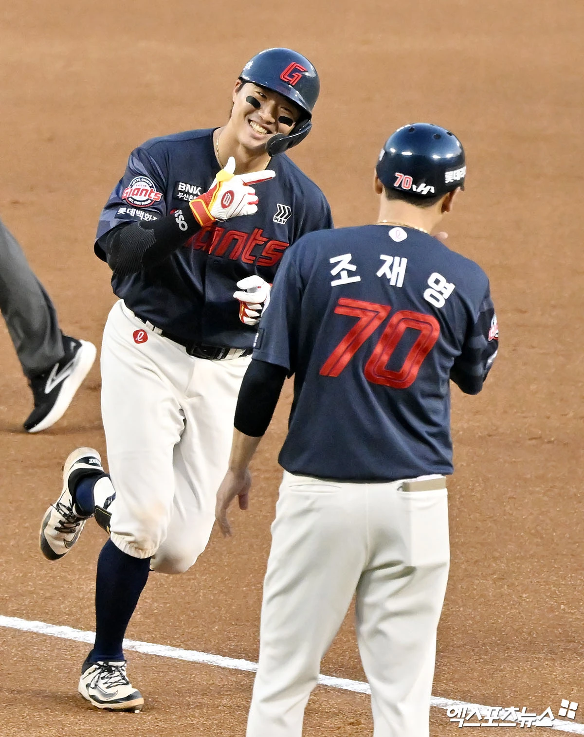 (엑스포츠뉴스 잠실, 김한준 기자) 15일 오후 서울 송파구 잠실야구장에서 열린 '2026 신한 SOL Bank KBO리그' 롯데 자이언츠와 LG 트윈스의 경기, 3회초 1사 롯데 손성빈이 솔로 홈런을 날린 후 기뻐하고 있다.