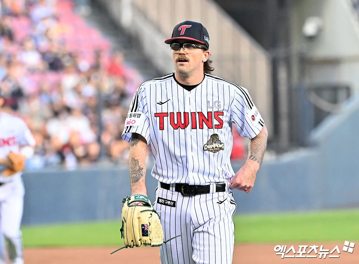 (엑스포츠뉴스 잠실, 김한준 기자) 15일 오후 서울 송파구 잠실야구장에서 열린 '2026 신한 SOL Bank KBO리그' 롯데 자이언츠와 LG 트윈스의 경기, 1회초 수비를 마친 LG 웰스가 더그아웃으로 향하고 있다.