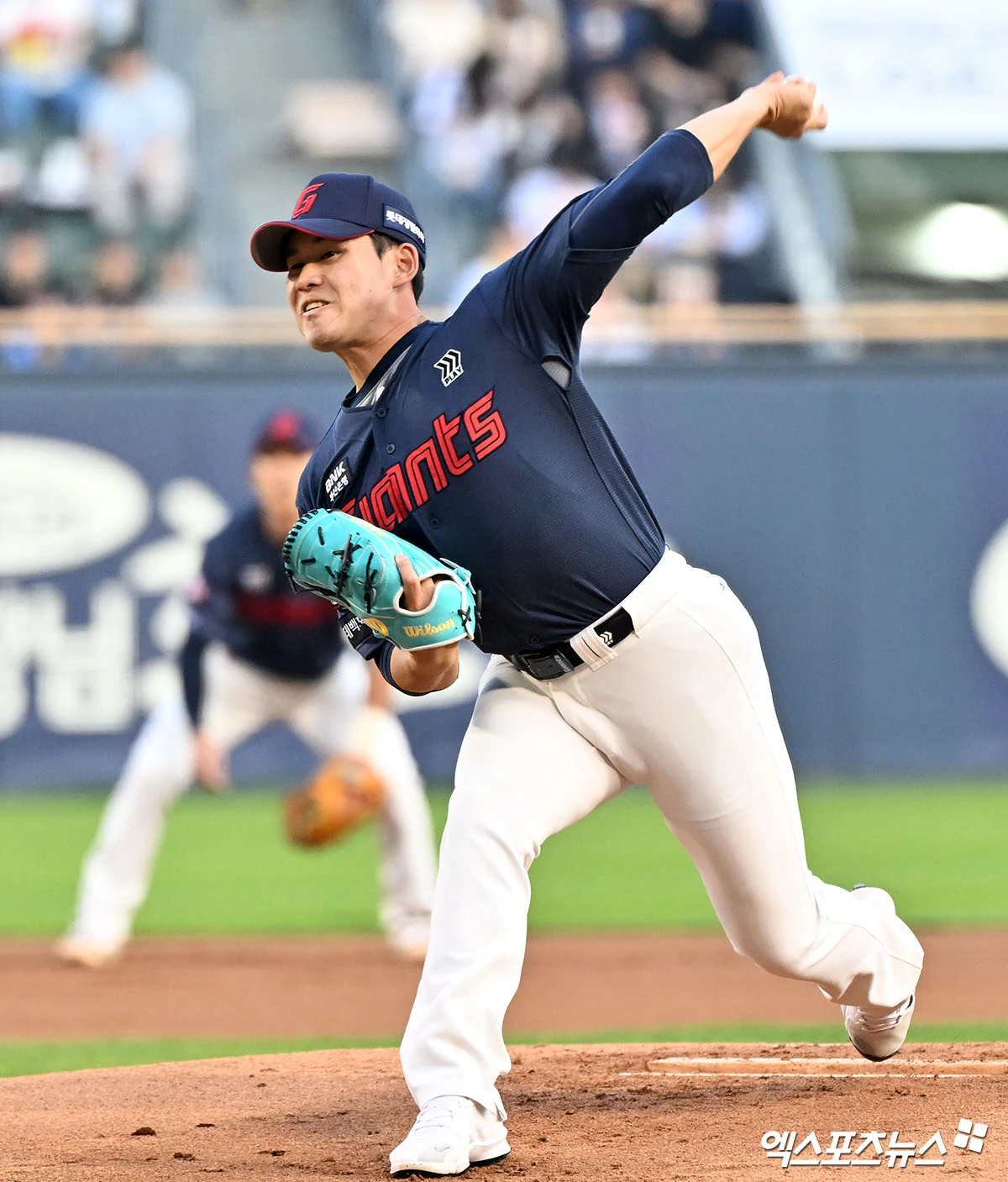 (엑스포츠뉴스 잠실, 김한준 기자) 15일 오후 서울 송파구 잠실야구장에서 열린 '2026 신한 SOL Bank KBO리그' 롯데 자이언츠와 LG 트윈스의 경기, 1회말 롯데 선발투수 김진욱이 공을 힘차게 던지고 있다.