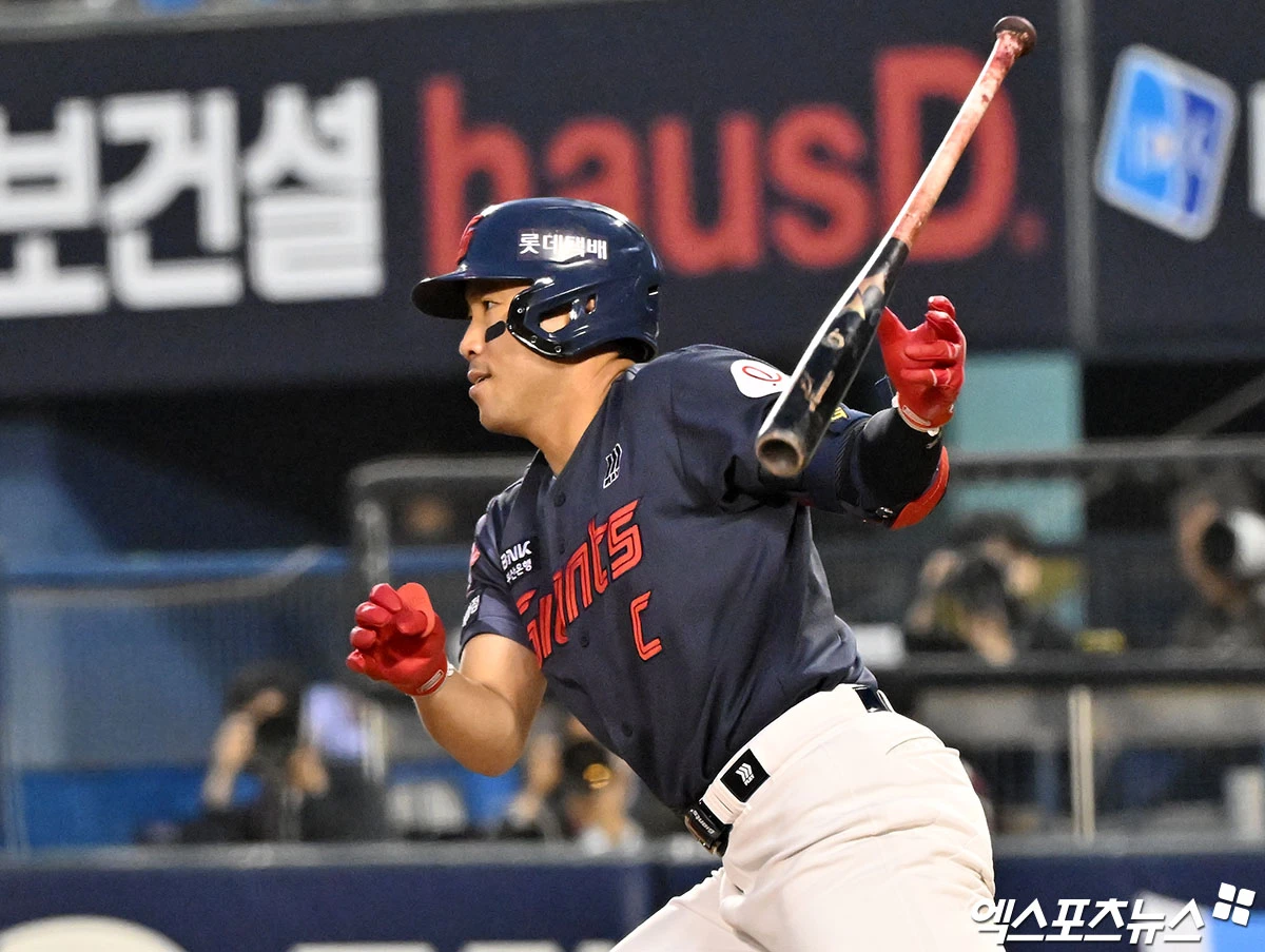 (엑스포츠뉴스 잠실, 김한준 기자) 15일 오후 서울 송파구 잠실야구장에서 열린 '2026 신한 SOL Bank KBO리그' 롯데 자이언츠와 LG 트윈스의 경기, 4회초 2사 2루 롯데 전준우가 타격을 하고 있다. 결과는 유격수 땅볼 아웃.