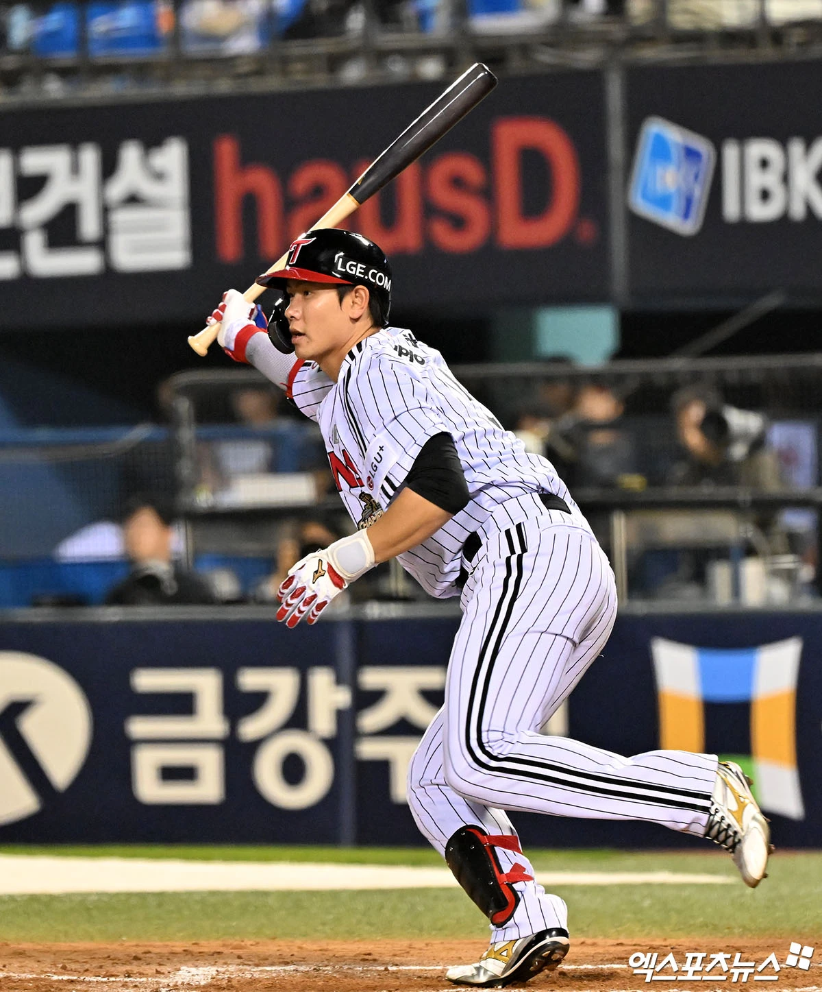 (엑스포츠뉴스 잠실, 김한준 기자) 15일 오후 서울 송파구 잠실야구장에서 열린 '2026 신한 SOL Bank KBO리그' 롯데 자이언츠와 LG 트윈스의 경기, 5회말 2사 LG 홍창기가 좌전안타를 날리고 있다.