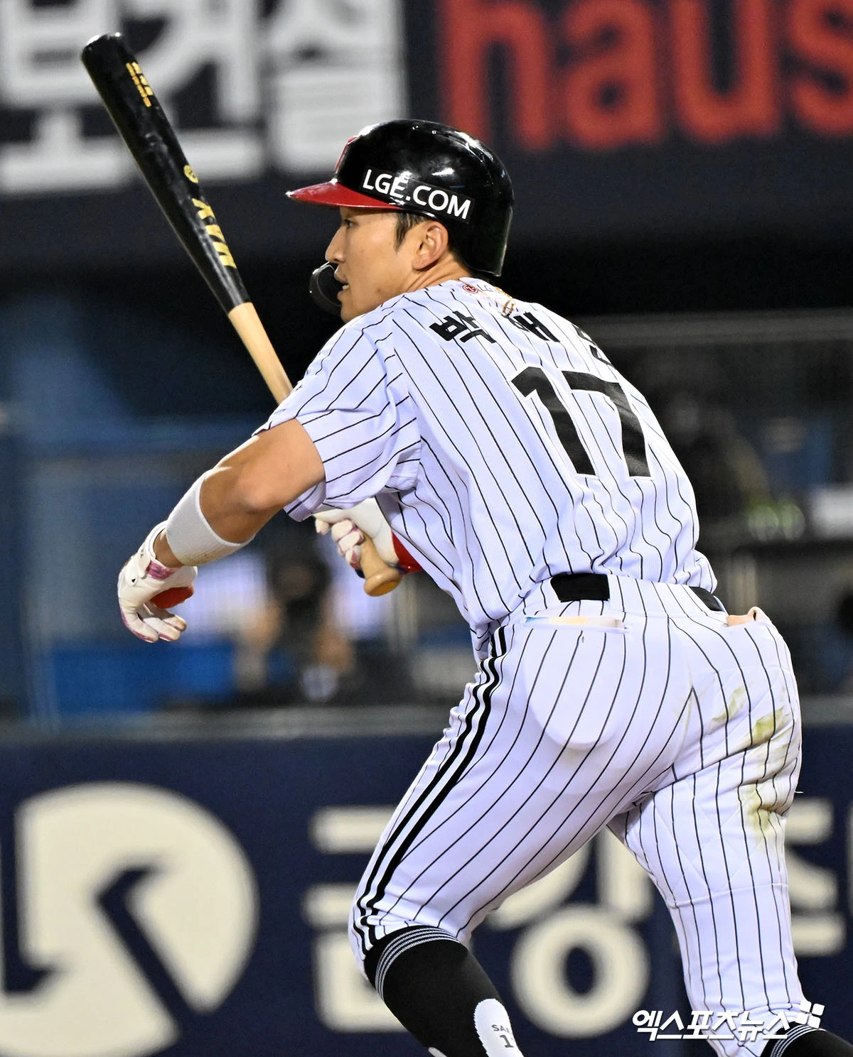 (엑스포츠뉴스 잠실, 김한준 기자) 15일 오후 서울 송파구 잠실야구장에서 열린 '2026 신한 SOL Bank KBO리그' 롯데 자이언츠와 LG 트윈스의 경기, 6회말 LG 박해민이 중전안타를 날리고 있다.