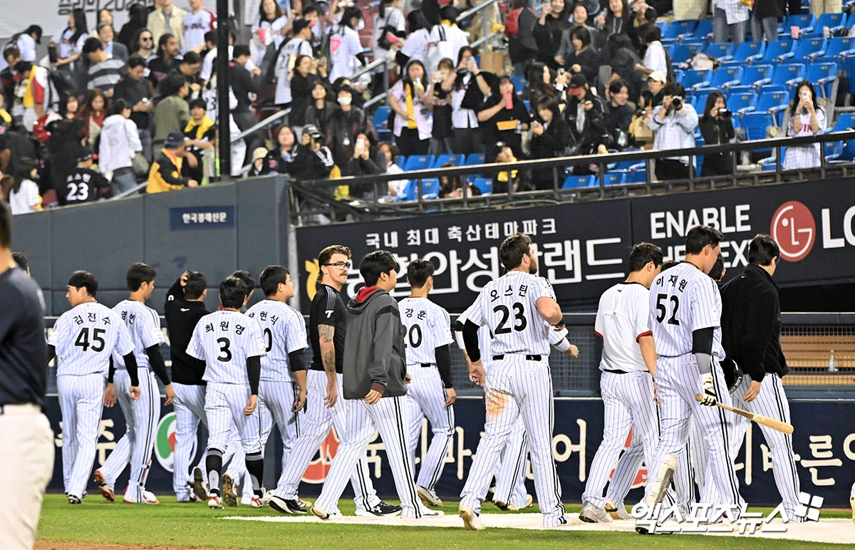 경기종료 후 LG 선수들이 그라운드를 빠져나가고 있다.