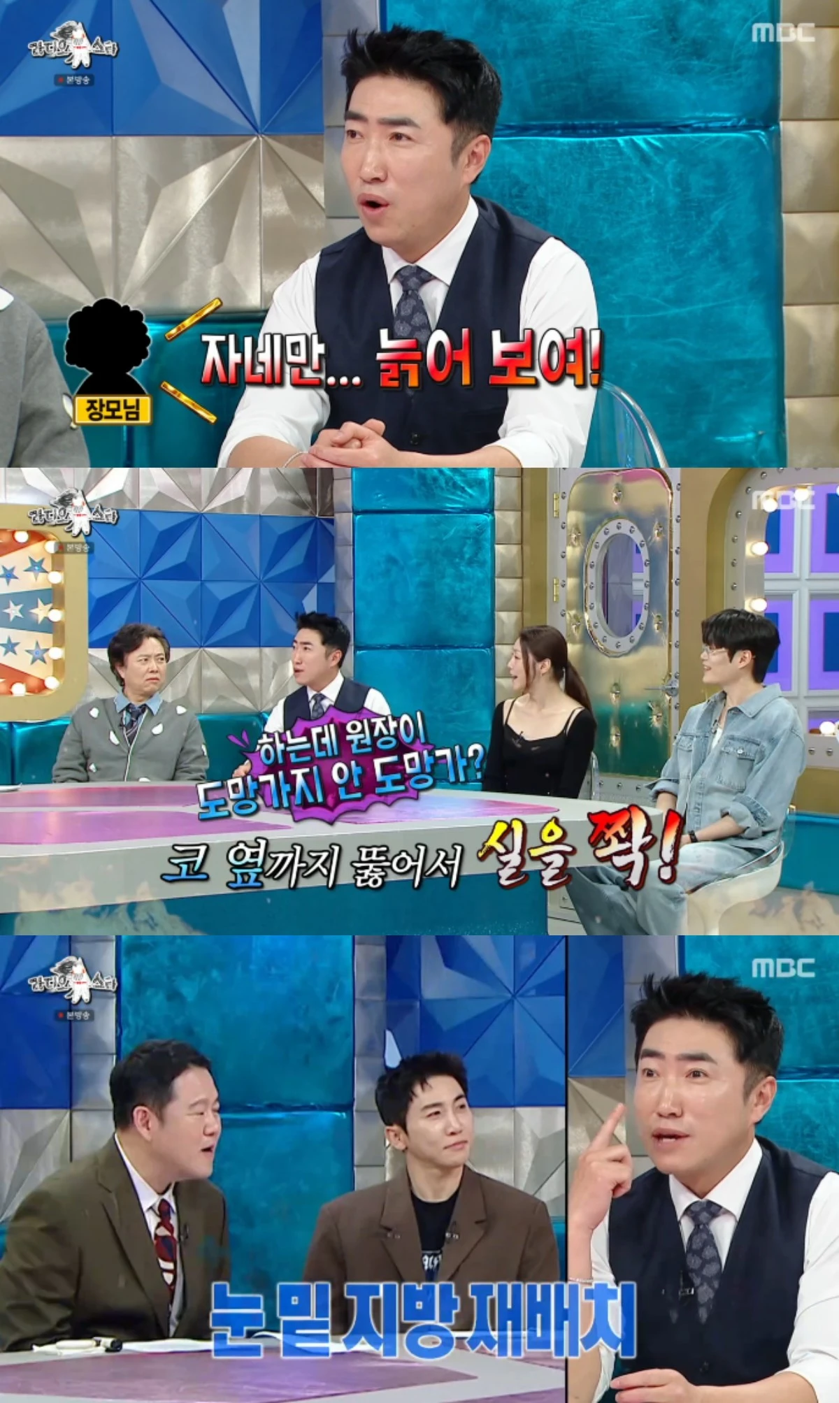장동민은 "일주일동안 너무 아프고 괴로웠다. 그런데 지금은 대만족이다. 이제 눈 밑 지방 재배치를 하고 싶다. 알고 보니까 저 빼고 전부 시술을 해오고 있었더라"고 말하며 배신감을 드러내 웃음을 줬다.