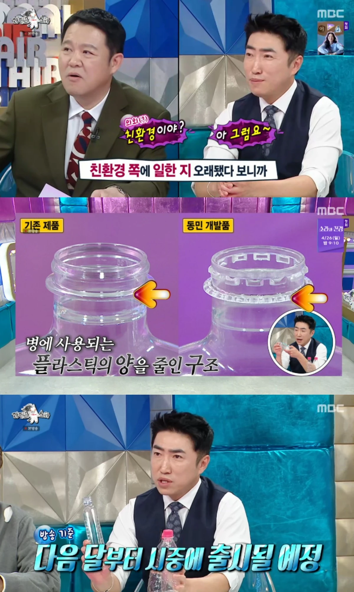 이어 "그래서 플라스틱 질량을 중어보자는 생각을 했다. 그래서 플라스틱을 덜어낸 제품을 만들었다. 다음달부터 시중에 나온다"면서 샘플을 보여줬다.