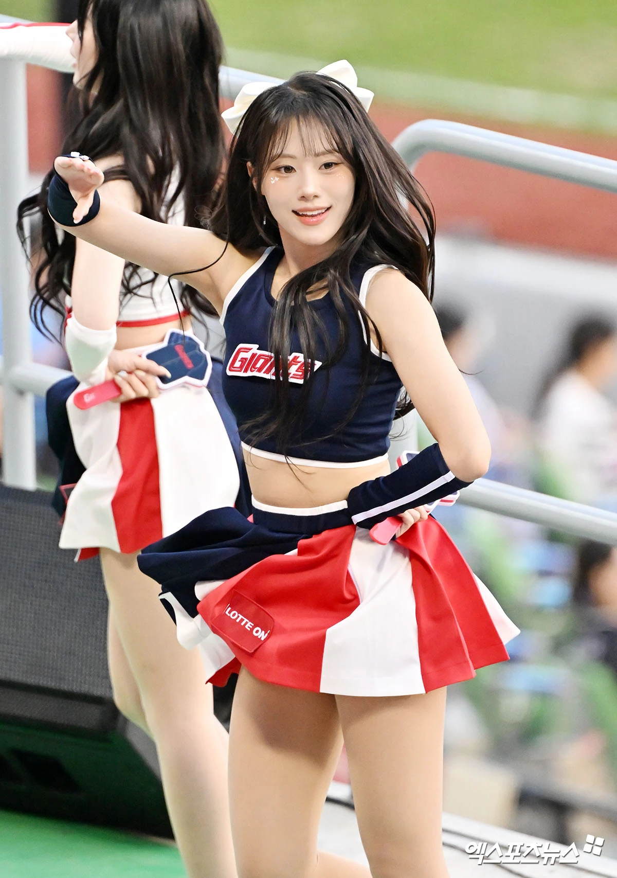 (엑스포츠뉴스 잠실, 김한준 기자) 15일 오후 서울 송파구 잠실야구장에서 열린 '2026 신한 SOL Bank KBO리그' 롯데 자이언츠와 LG 트윈스의 경기, 롯데오효정 치어리더가 열띤 응원을 선보이고 있다.