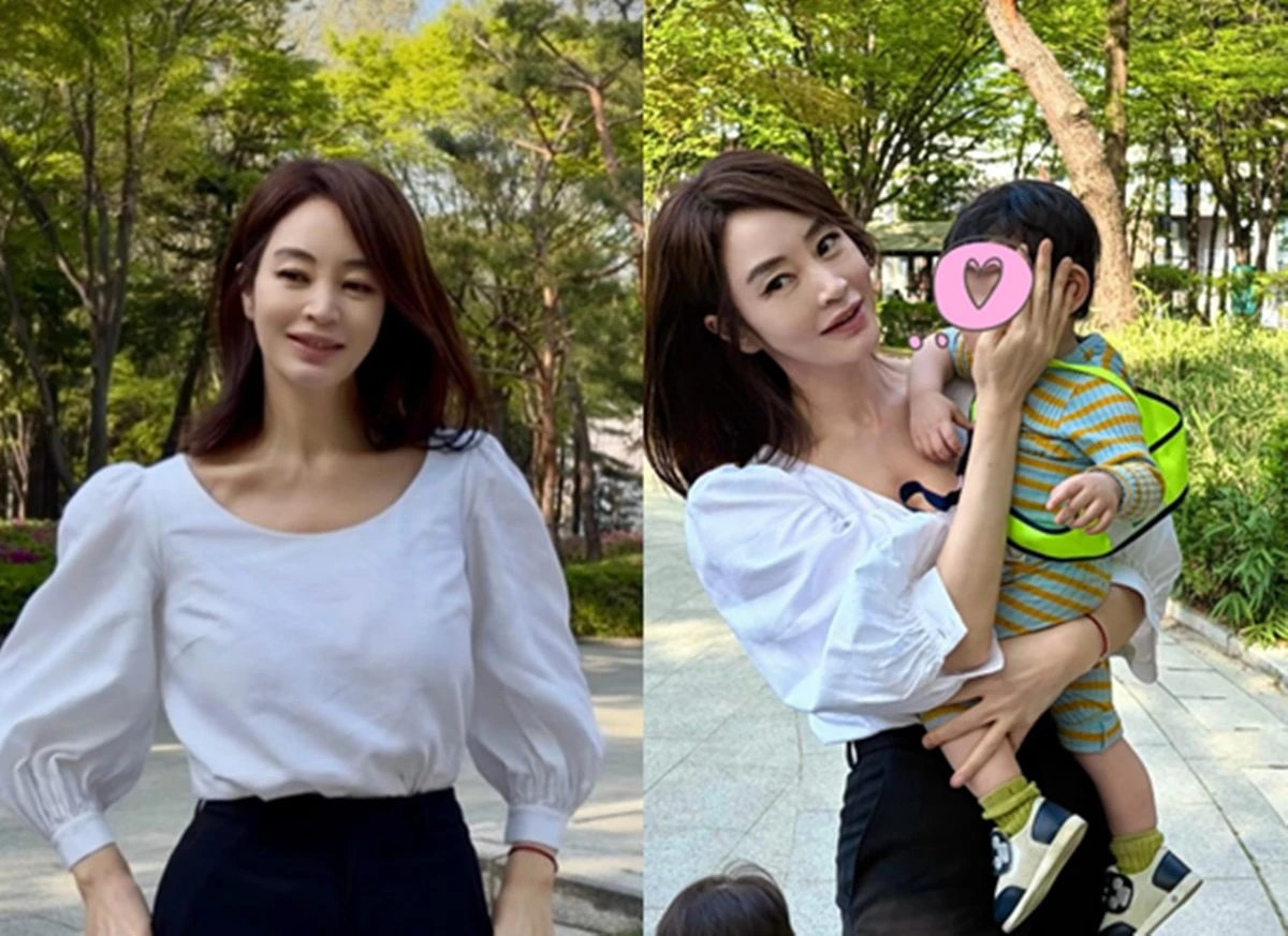 김혜수, 아이 품에 안고 공원서 포착…'천사'가 따로 없네 [★해시태그]