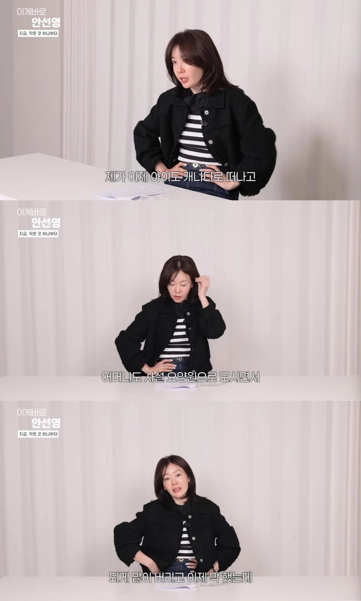 안선영은 "제 아이도 이제 캐나다로 떠나고 어머니도 사설 요양원으로 모시면서 큰 집이 필요가 없어져서 작은 공간으로 이사하면서 되게 많이 버렸다"고 근황을 전했다.