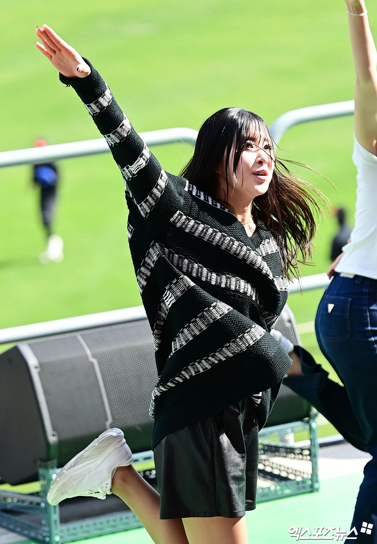 (엑스포츠뉴스 잠실, 박지영 기자) 16일 오후 서울 송파구 잠실야구장에서 열리는 '2026 신한 SOL Bank KBO리그' 롯데 자이언츠와 LG 트윈스의 경기에 앞서 LG 치어리더 우혜준이 리허설을 하고 있다.