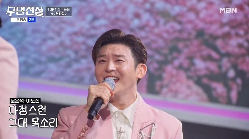 문은석과 김태웅의 정통 트롯 '세월아' 무대에 이어 이도진은 문은석과 '첫사랑' 듀엣 무대에 나서며 분위기를 반전시켰다. 청아하게 열리는 그의 보이스는 관객의 감정을 단숨에 끌어올렸고, 꽃다발을 건네는 퍼포먼스로 섬세한 무대 매너까지 더했다. 높은 음역대를 오가는 두 사람의 조화로운 하모니는 깊은 여운을 남기기에 충분했다.