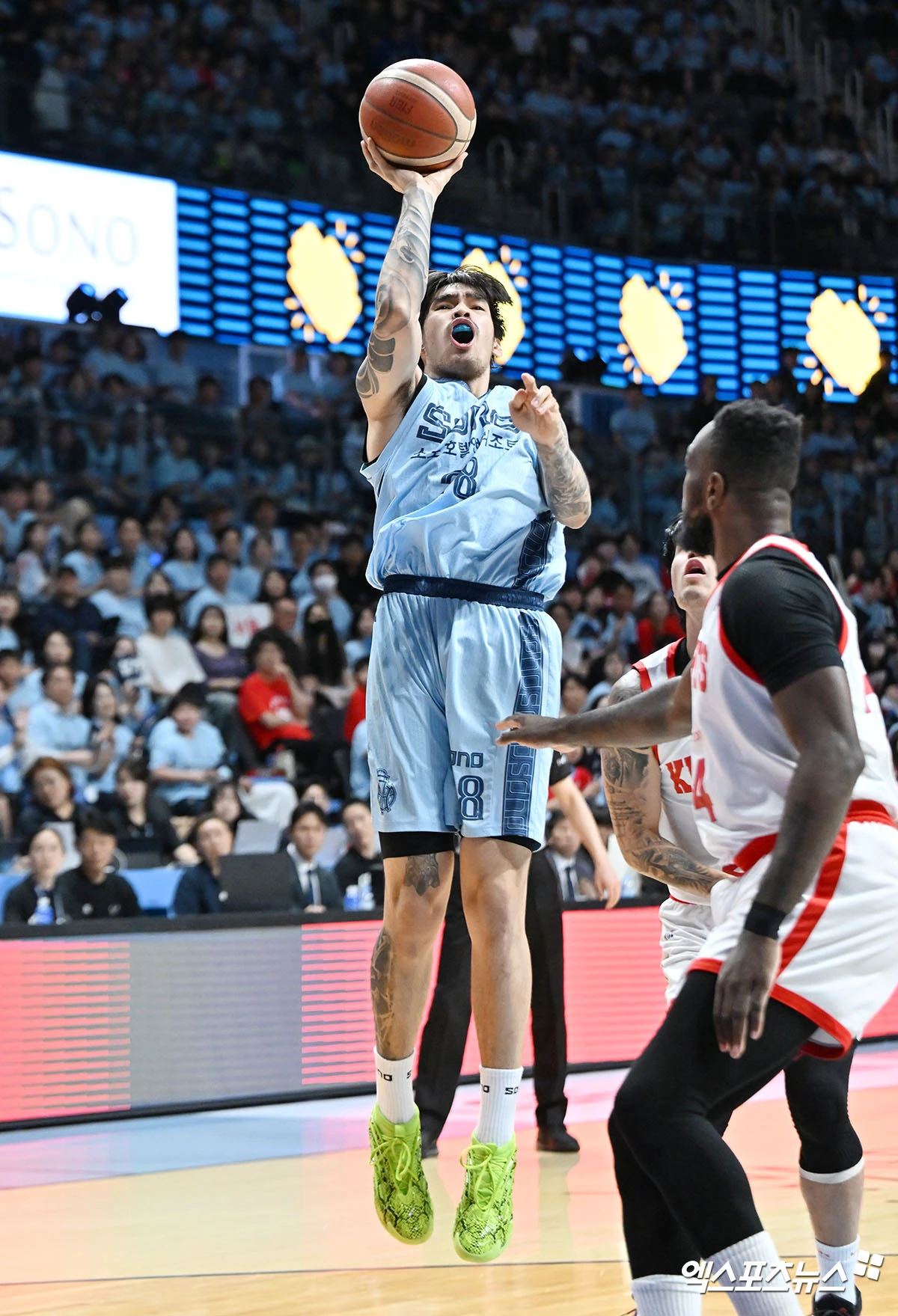 (엑스포츠뉴스 고양, 김한준 기자) 16일 오후 고양 소노아레나에서 열린 2025-2026 LG전자 프로농구 고양 소노와 서울 SK의 6강 플레이오프 3차전, 소노 켐바오가 공격을 시도하고 있다.
