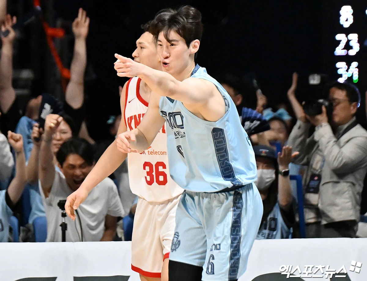 (엑스포츠뉴스 고양, 김한준 기자) 16일 오후 고양 소노아레나에서 열린 2025-2026 LG전자 프로농구 고양 소노와 서울 SK의 6강 플레이오프 3차전, 소노 이정현이 기뻐하고 있다.
