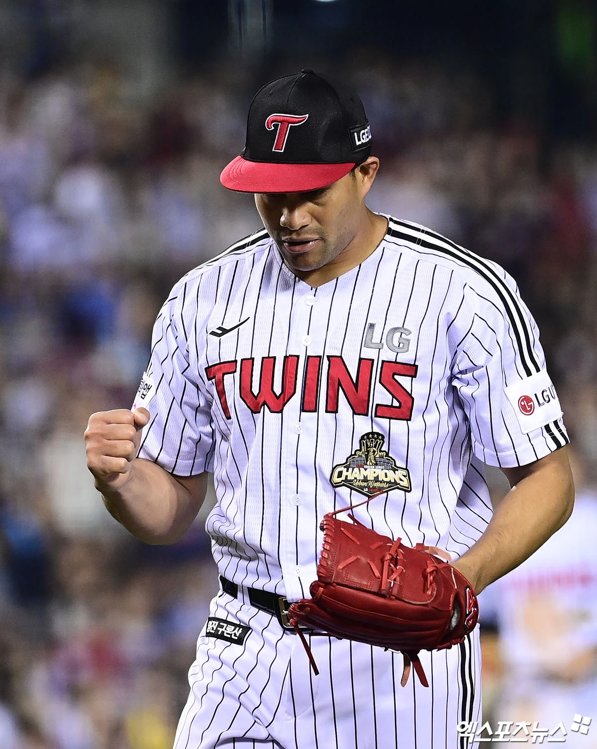 (엑스포츠뉴스 잠실, 박지영 기자) 16일 오후 서울 송파구 잠실야구장에서 열린 '2026 신한 SOL Bank KBO리그' 롯데 자이언츠와 LG 트윈스의 경기, 5회초 종료 후 LG 선발투수 치리노스가 기뻐하며 더그아웃으로 향하고 있다.