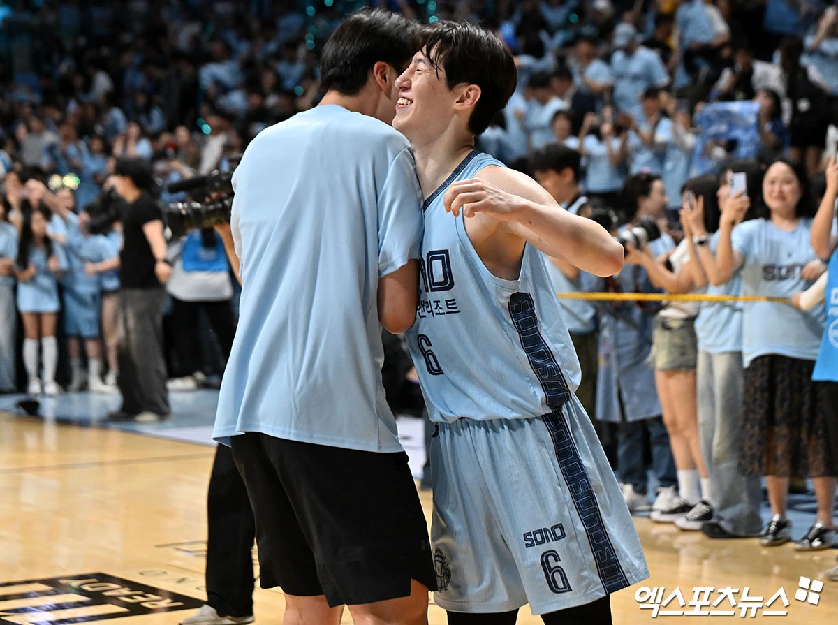 (엑스포츠뉴스 고양, 김한준 기자) 16일 오후 고양 소노아레나에서 열린 2025-2026 LG전자 프로농구 고양 소노와 서울 SK의 6강 플레이오프 3차전, 소노가 SK에 66:65로 승리하며 4강에 진출했다.