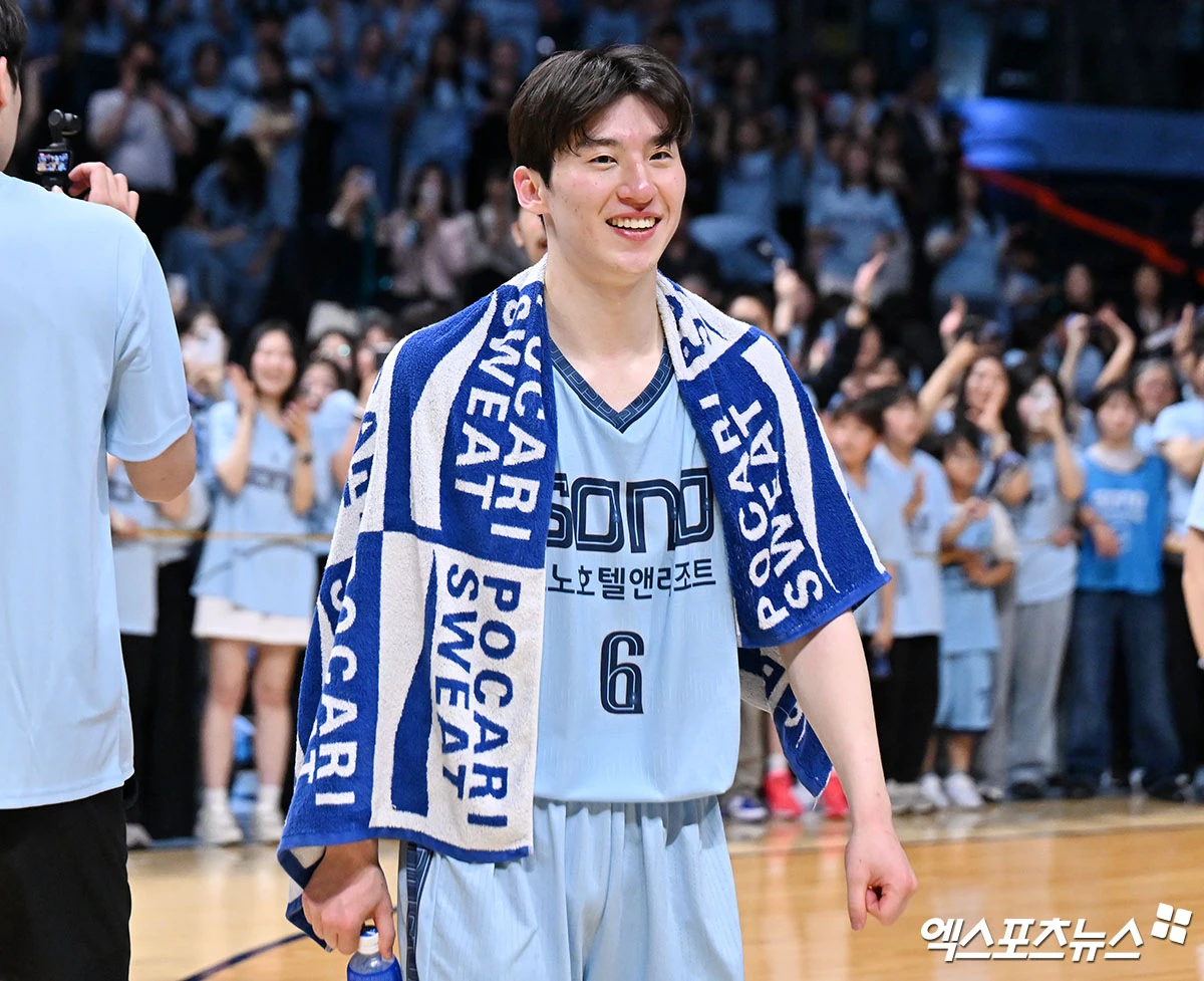 (엑스포츠뉴스 고양, 김한준 기자) 16일 오후 고양 소노아레나에서 열린 2025-2026 LG전자 프로농구 고양 소노와 서울 SK의 6강 플레이오프 3차전, 소노가 SK에 66:65로 승리하며 4강에 진출했다.