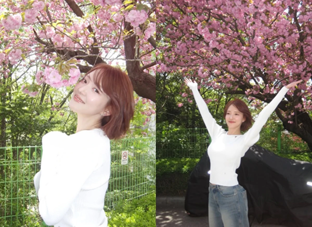 공개된 사진 속 이세영은 만개한 벚꽃 나무 아래에서 다양한 포즈를 취하며 봄 분위기를 만끽하고 있다. 양팔을 활짝 벌린 채 환한 미소를 짓는 모습부터, 고개를 살짝 기울인 채 카메라를 바라보는 모습까지 자연스러운 매력이 돋보인다.