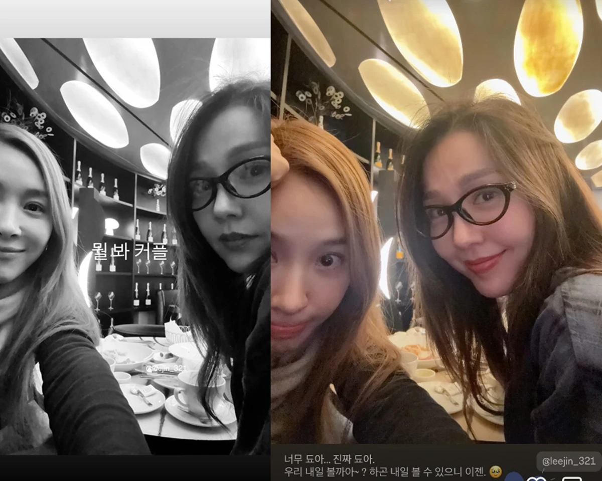 지난 16일 옥주현은 "뭘 봐 커플"이라는 글과 함께 핑클 멤버 이진과 찍은 사진을 올렸다.