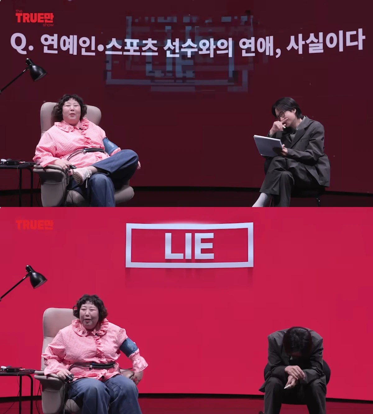이에 '거짓말'이라는 반응이 떴고, 신기루는 "아 힘을 못 줬다"며 머쓱해했다.