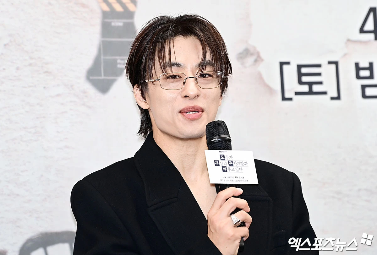 17일 서울 마포구 스탠포드호텔 2층 그랜드볼룸에서 JTBC 새 토일드라마 '모두가 자신의 무가치함과 싸우고 있다' 제작발표회가 진행됐다. 이 자리에는 차영훈 감독을 비롯해 구교환, 고윤정, 오정세, 강말금, 박해준, 한선화가 참석했다.