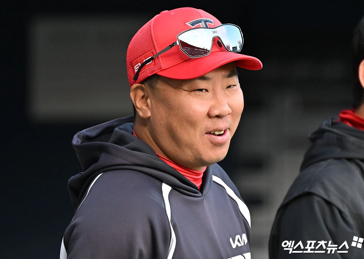 (엑스포츠뉴스 잠실, 김한준 기자) 17일 오후 서울 송파구 잠실야구장에서 열린 '2026 신한 SOL Bank KBO리그' KIA 타이거즈와 두산 베어스의 경기, KIA 이범호 감독이 미소를 보이고 있다.