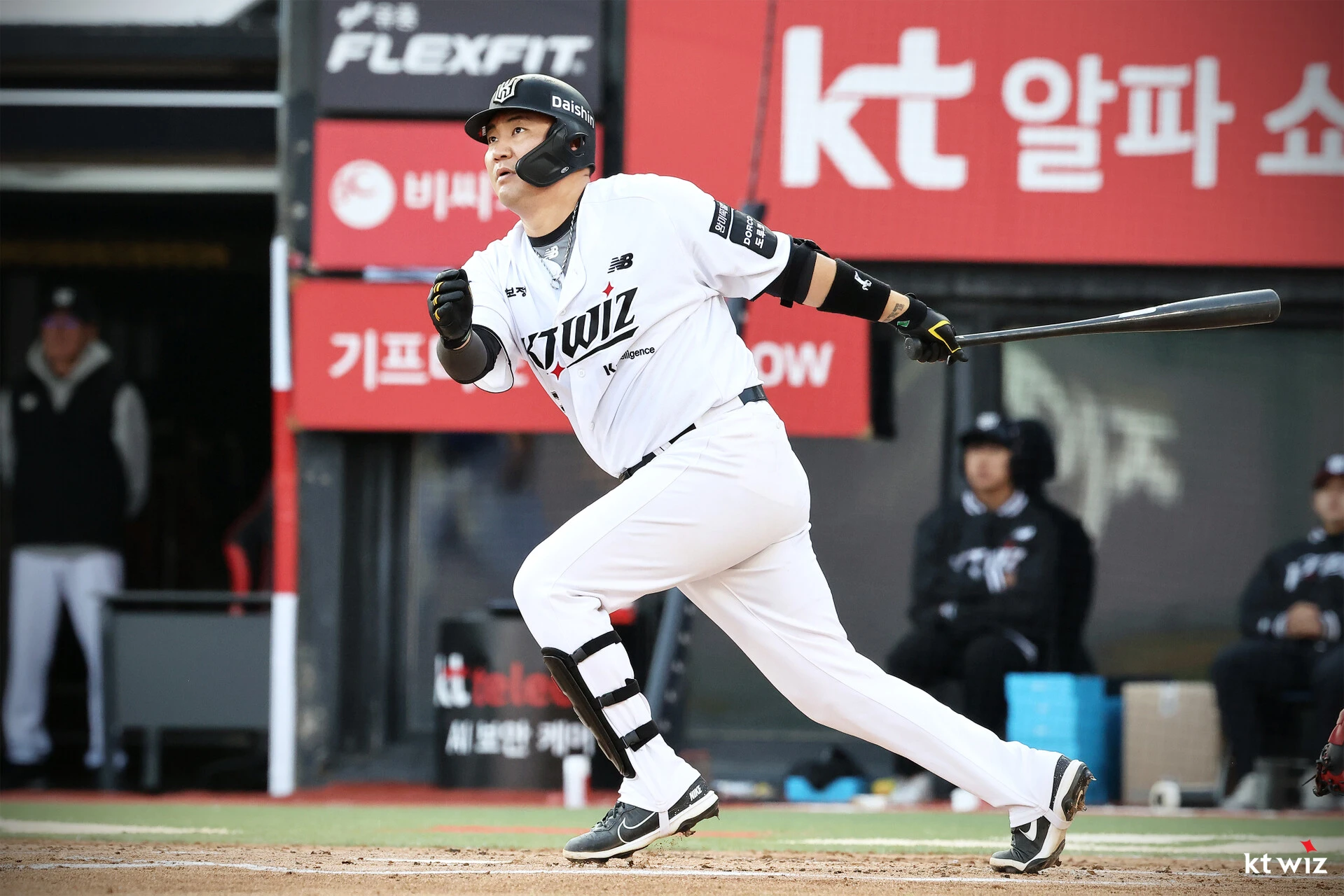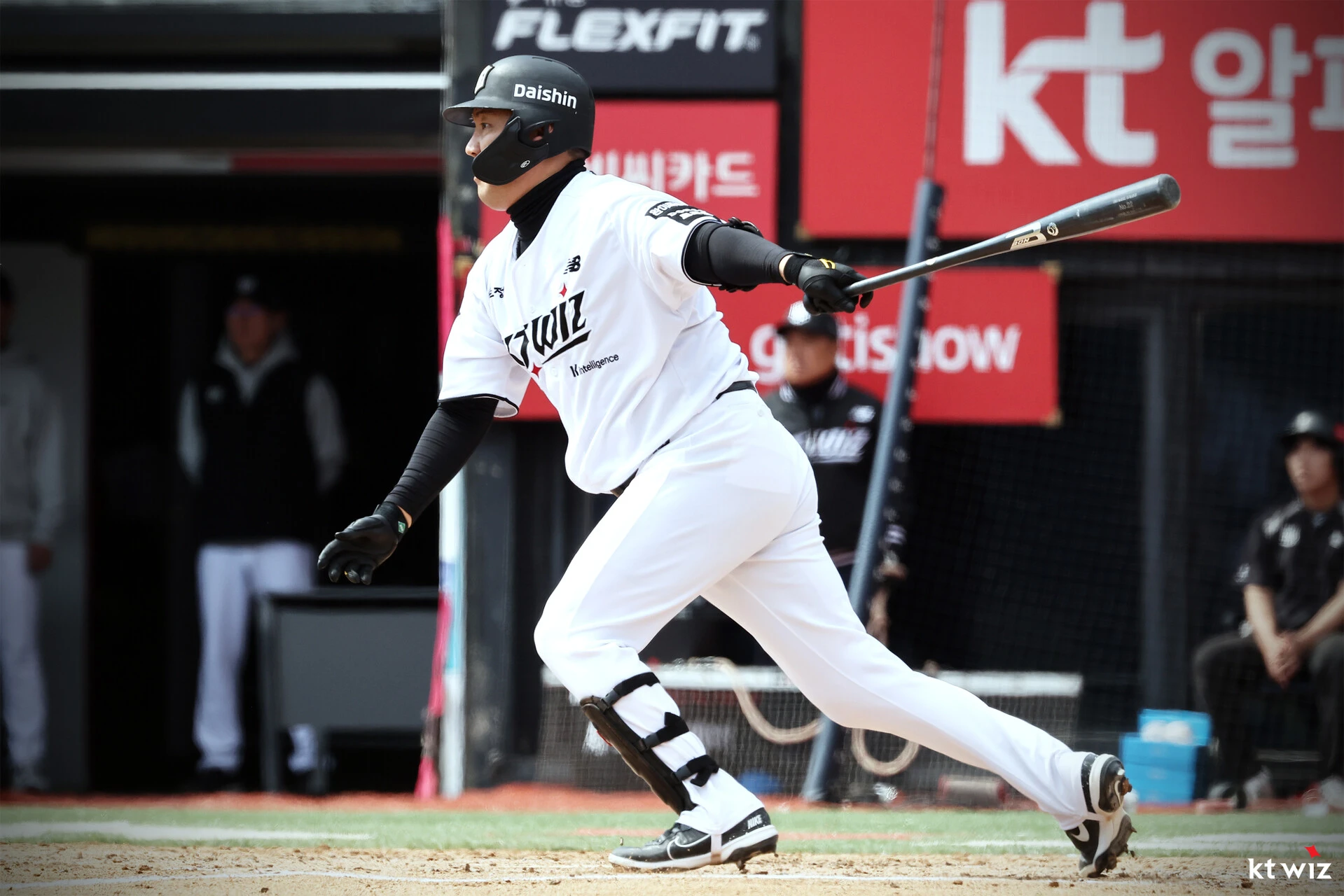 이는 장성우의 시즌 6호 아치였다. 경기 전까지 김도영(KIA 타이거즈), 빅터 레이예스(롯데 자이언츠), 오스틴 딘(LG 트윈스)과 함께 홈런 공동 1위였던 장성우는 단독 선두로 올랐다. 여기에 타점도 19타점으로 강백호(한화 이글스)와 공동 1위다.