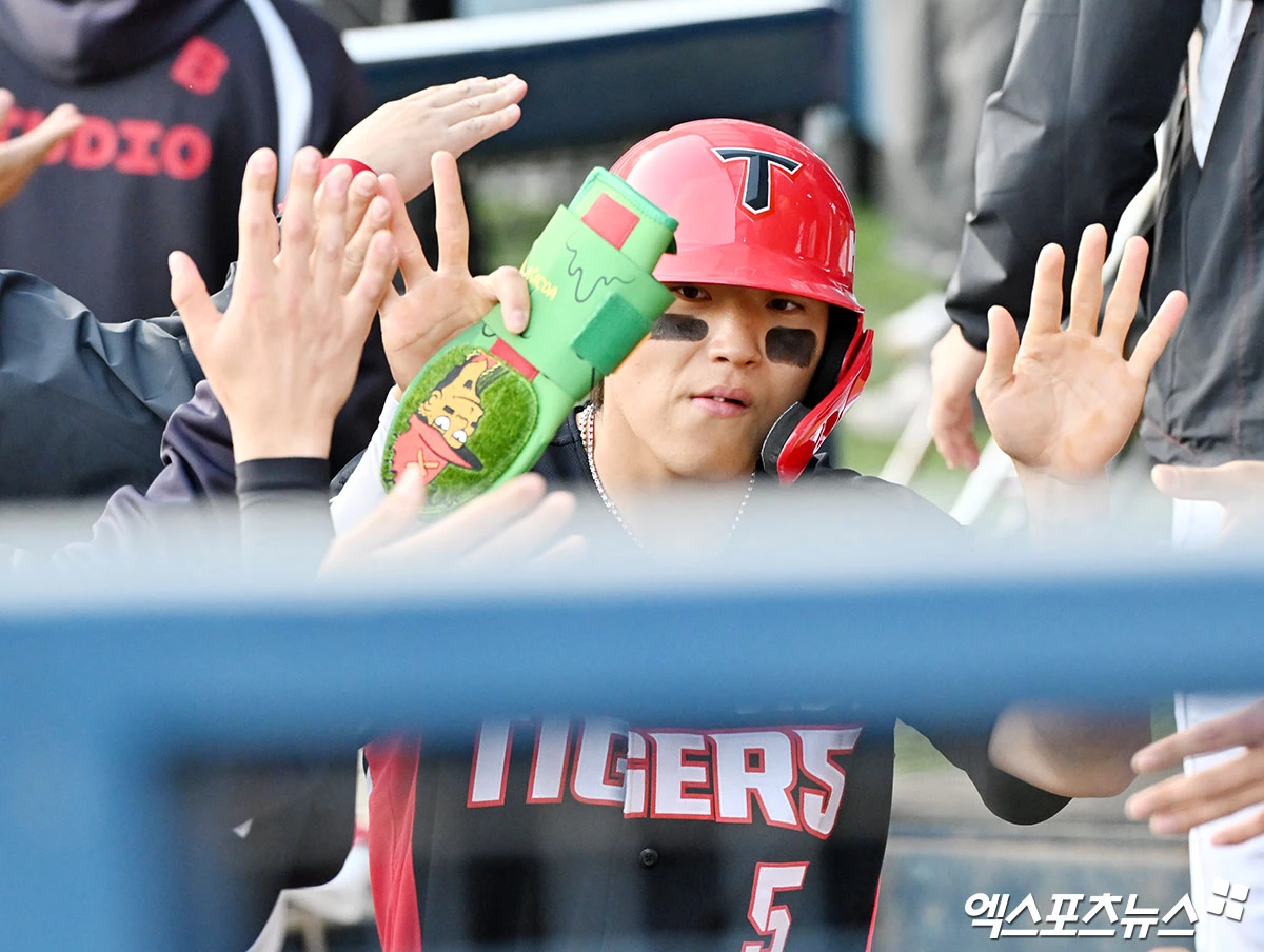 김도영 ‘득점하고 하이파이브’[포토]