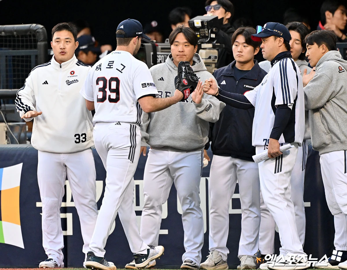 (엑스포츠뉴스 잠실, 김한준 기자) 17일 오후 서울 송파구 잠실야구장에서 열린 '2026 신한 SOL Bank KBO리그' KIA 타이거즈와 두산 베어스의 경기, 1회초 수비를 마친 두산 잭로그가 더그아웃으로 향하고 있다.