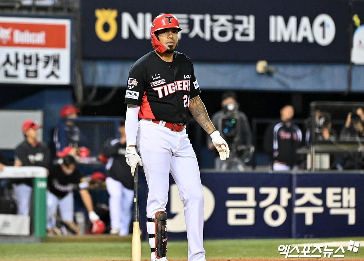 (엑스포츠뉴스 잠실, 김한준 기자) 17일 오후 서울 송파구 잠실야구장에서 열린 '2026 신한 SOL Bank KBO리그' KIA 타이거즈와 두산 베어스의 경기, 5회초 2사 1,2루 KIA 카스트로가 루킹 삼진을 당하고 있다.