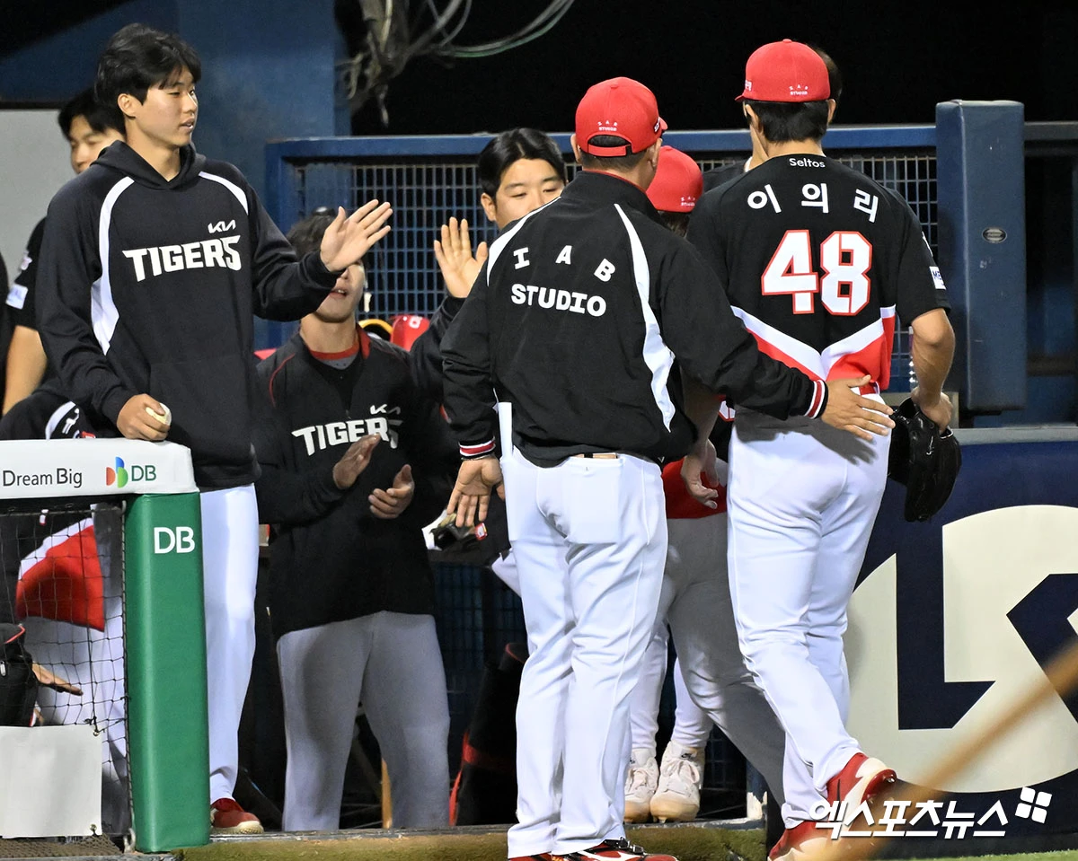 (엑스포츠뉴스 잠실, 김한준 기자) 17일 오후 서울 송파구 잠실야구장에서 열린 '2026 신한 SOL Bank KBO리그' KIA 타이거즈와 두산 베어스의 경기, 5회말 수비를 마친 KIA 이의리가 더그아웃으로 향하고 있다.