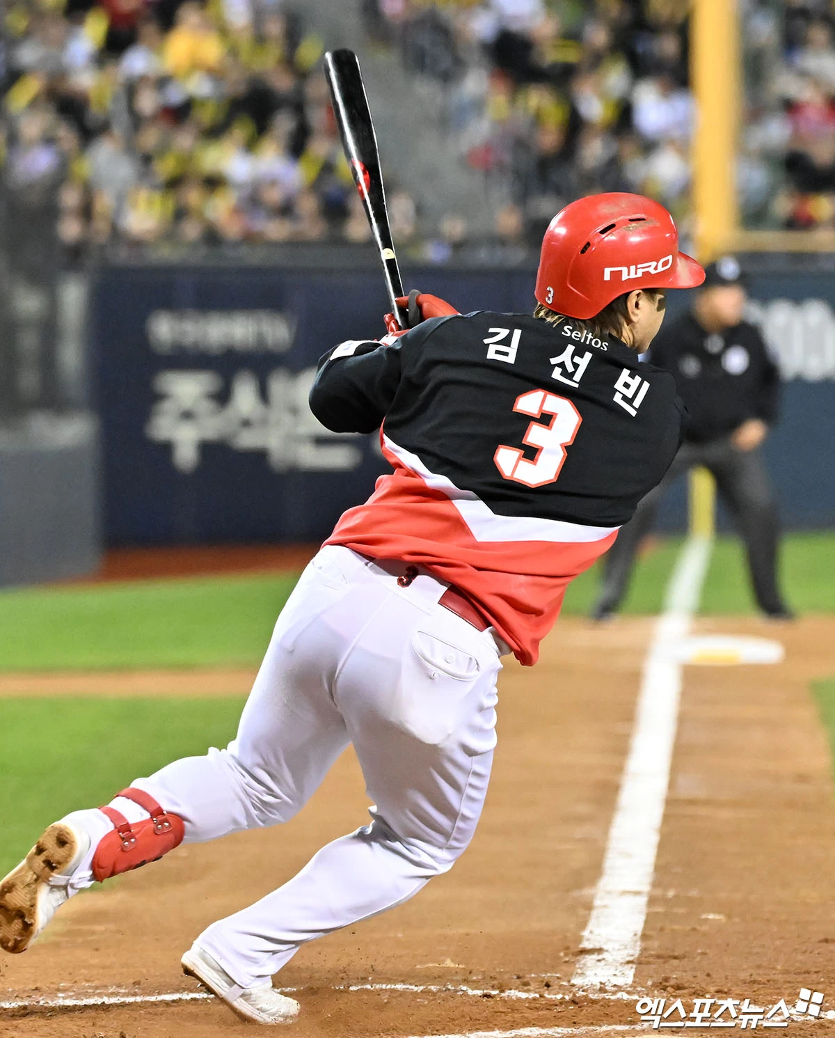 (엑스포츠뉴스 잠실, 김한준 기자) 17일 오후 서울 송파구 잠실야구장에서 열린 '2026 신한 SOL Bank KBO리그' KIA 타이거즈와 두산 베어스의 경기, 7회초 1사 1,2루 KIA 김선빈이 2타점 2루타를 날리고 있다.