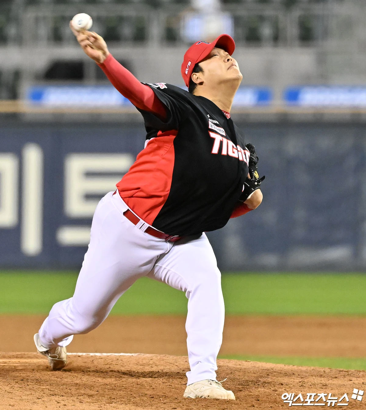 (엑스포츠뉴스 잠실, 김한준 기자) 17일 오후 서울 송파구 잠실야구장에서 열린 '2026 신한 SOL Bank KBO리그' KIA 타이거즈와 두산 베어스의 경기, 7회말 1사 2,3루 KIA 조상우가 공을 힘차게 던지고 있다.