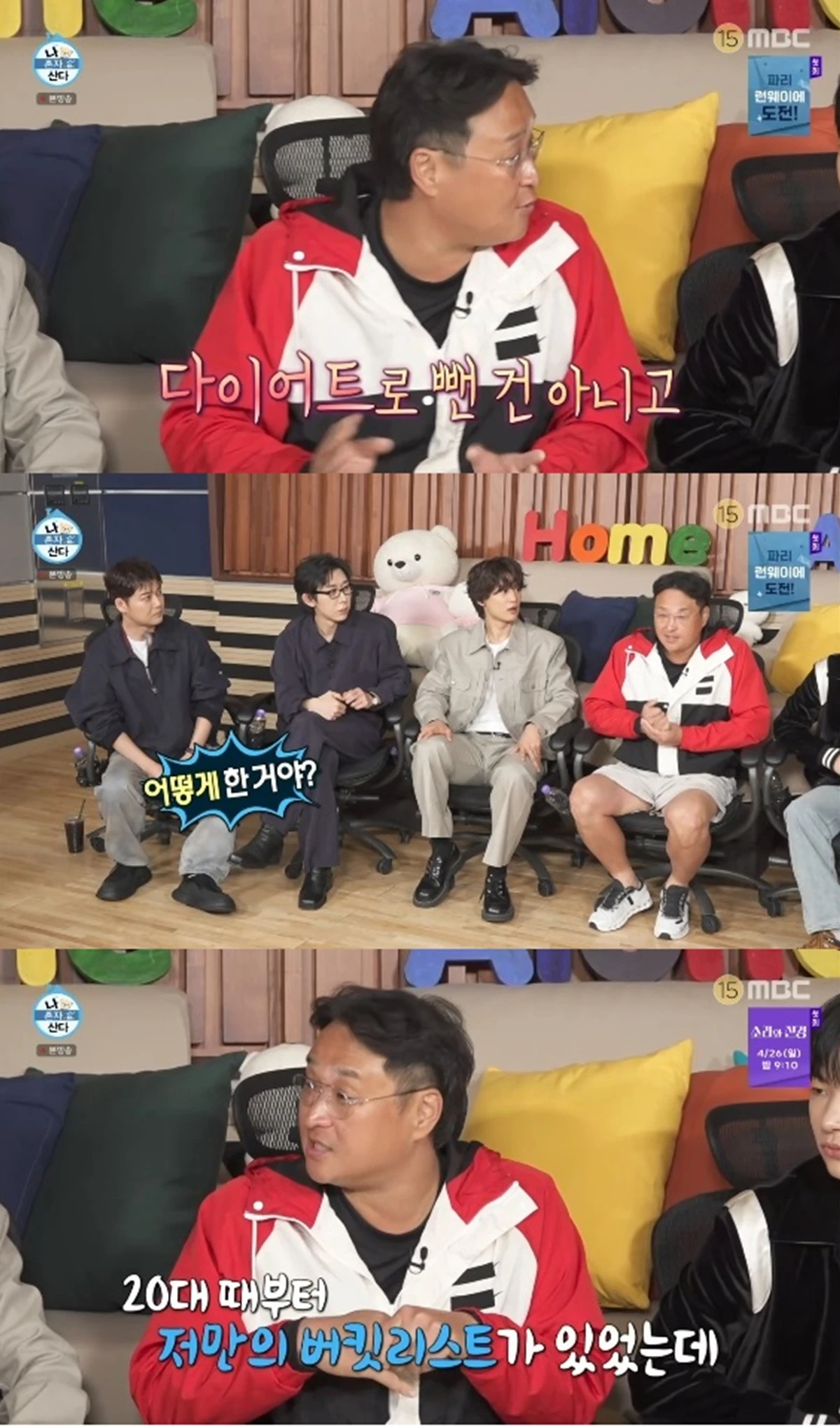 구성환은 몸무게가 12kg 정도 빠졌는데 다이어트로 뺀 건 아니고 얘기했다.