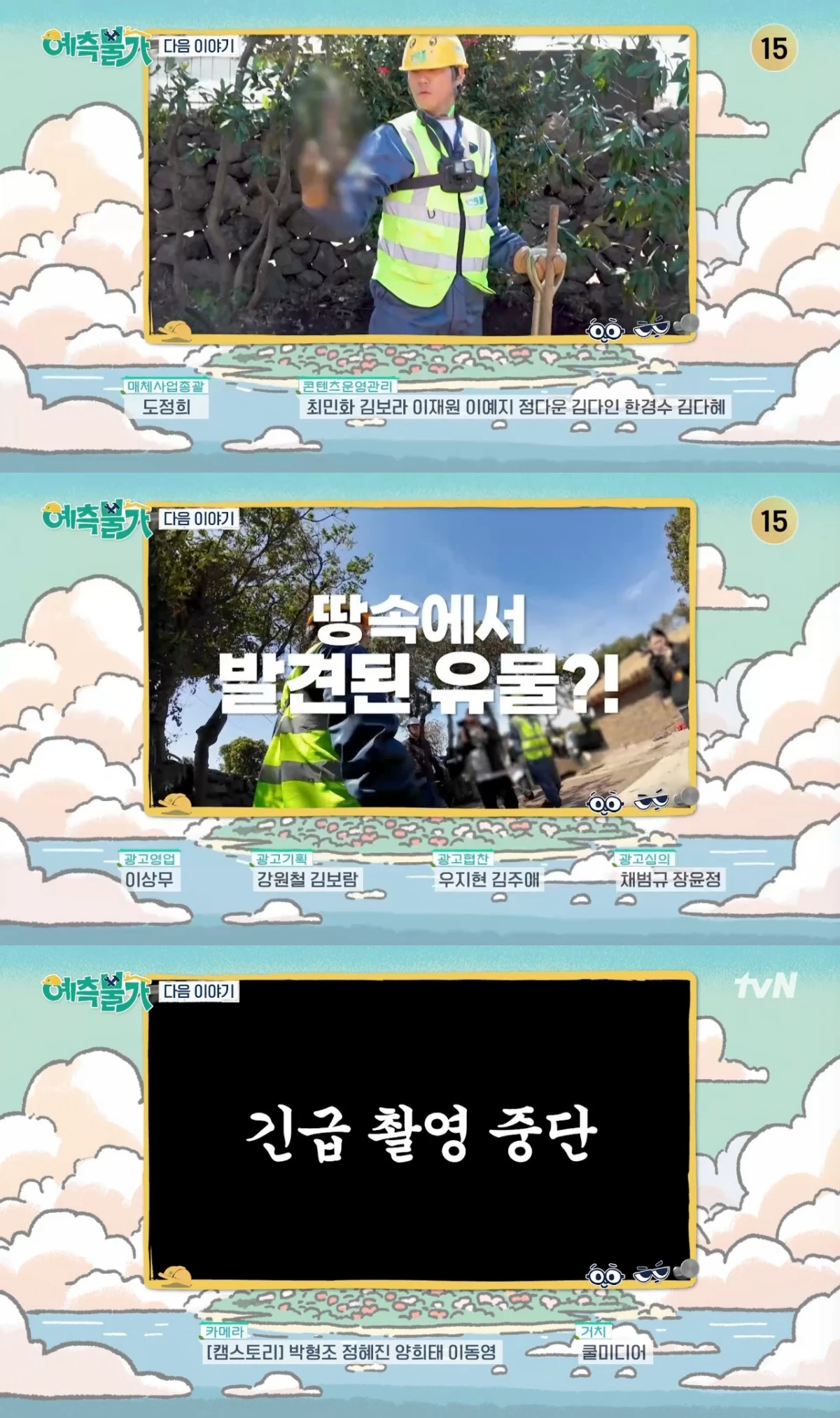 17일 tvN '예측불가[家]' 방송 말미에는 조경 공사 중 유물로 추정되는 정체불명의 물건이 발견돼 공사가 중단되는 모습이 전파를 탔다.