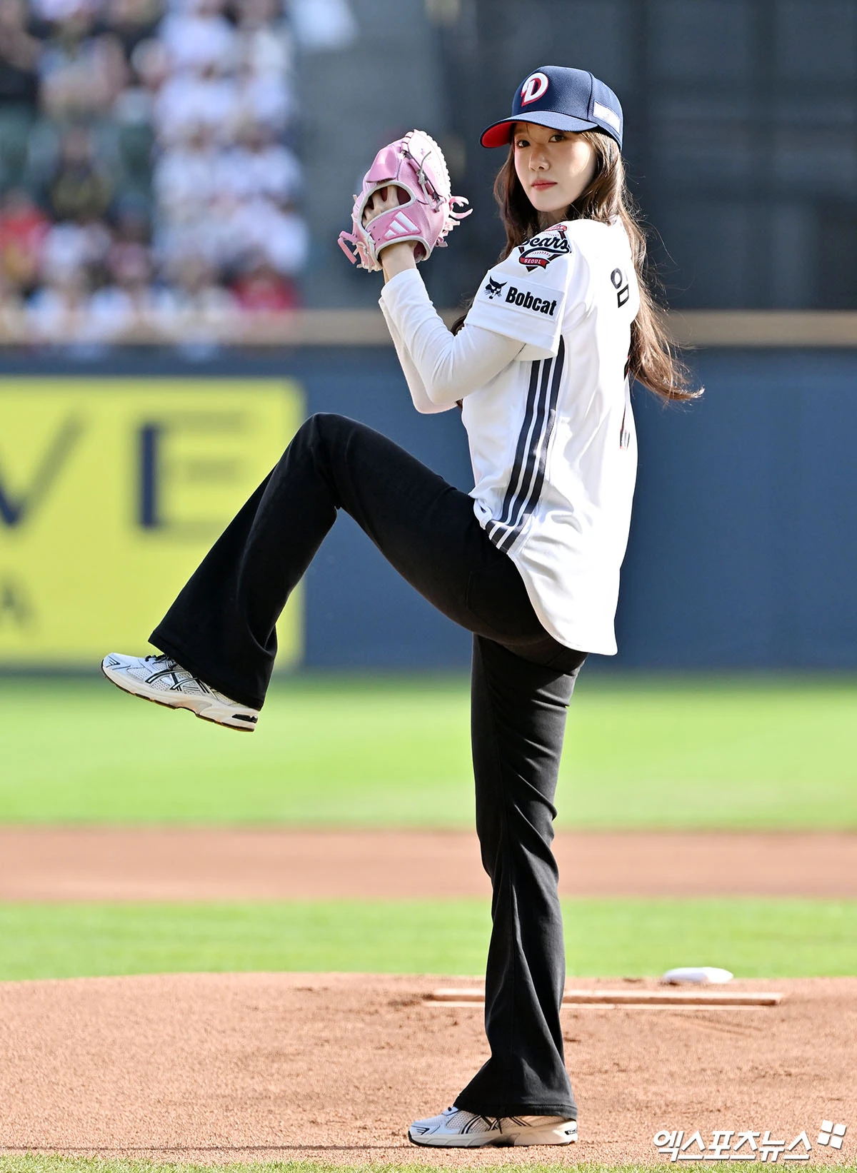 (엑스포츠뉴스 잠실, 김한준 기자) 18일 오후 서울 송파구 잠실야구장에서 열린 '2026 신한 SOL Bank KBO리그' KIA 타이거즈와 두산 베어스의 경기, 경기 전 가수 겸 배우 윤아가 시구에 임하고 있다.