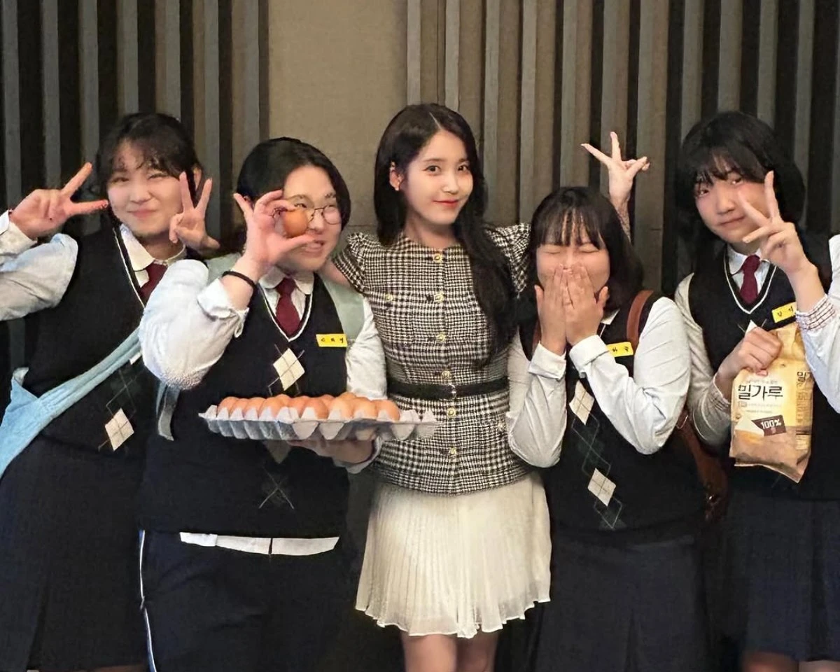 거사를 앞두고 있어 가까스로 참은 아이유는 네 명의 배우들과 다정하게 사진을 찍는가 하면, 화가 난 듯한 표정을 짓기도 해 웃음을 자아낸다.